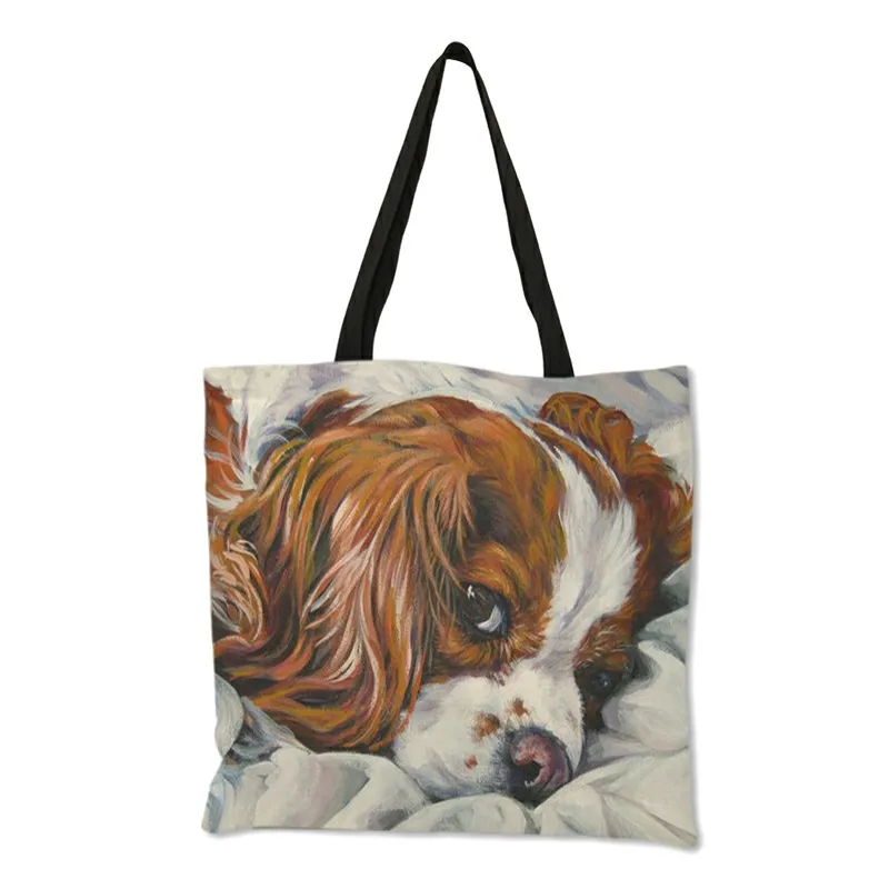 Женская сумка Charles Spaniel, сумка-тоут с принтом масляной живописи, Женская Офисная школьная дорожная сумка через плечо, многоразовые сумки для покупок