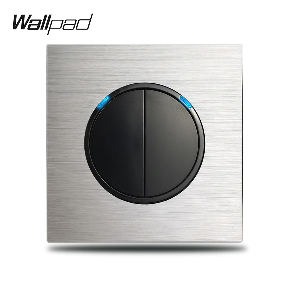 L6 2 Выключатель двойной выключатель света 1 способ 2 способ матовый серебристый алюминий пластина Кнопка возврата случайный щелчок с синим светодиодный индикатор, подходит дляФлуоресцентная лампа, галогенная лампа, энергосберегающая лампа, светодиодный светильник. Мягкий синий светодиодный индикатор будет включен, когда свет выключен, и будет выключен, когда свет включен. Так что вы можете легко найти переключатель в темноте.