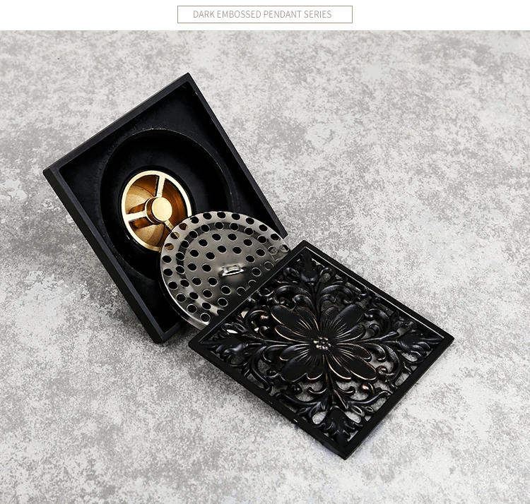 ZGRK квадратный черный медный душевой трап ситечко для пола Крышка для балкона ванная комната аксессуары для ванны решетка для слива 10*10