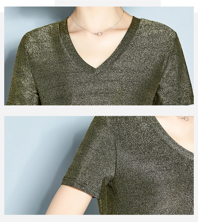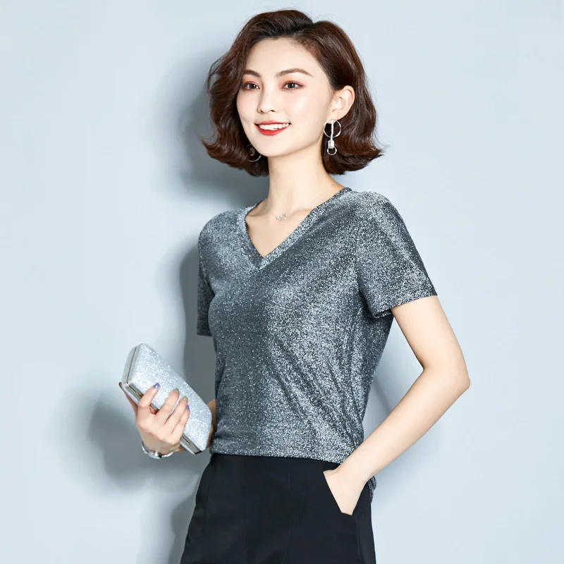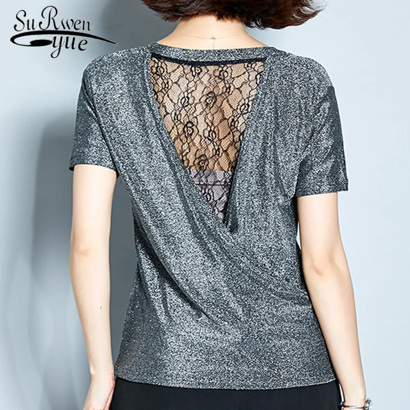 Летняя футболка с короткими рукавами Блузка для женщин blusas mujer de moda 2021 с низким вырезом на спине, серебристый Топы женские рубашки топы и блузки 4147 50