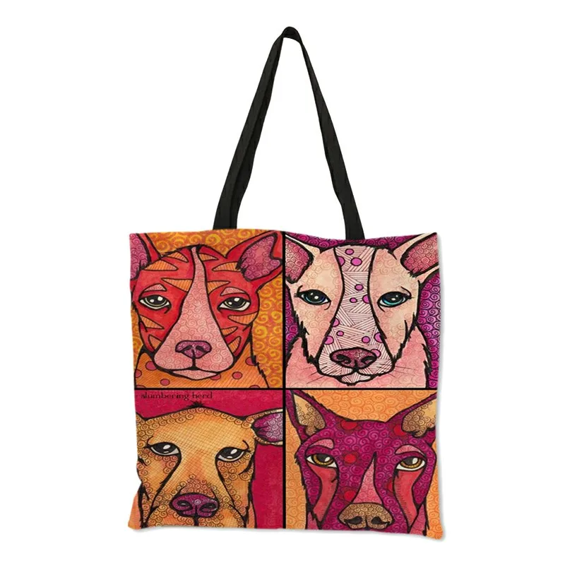 Многоразовая сумка для покупок, милые сумки-тоуты с принтом собаки ...