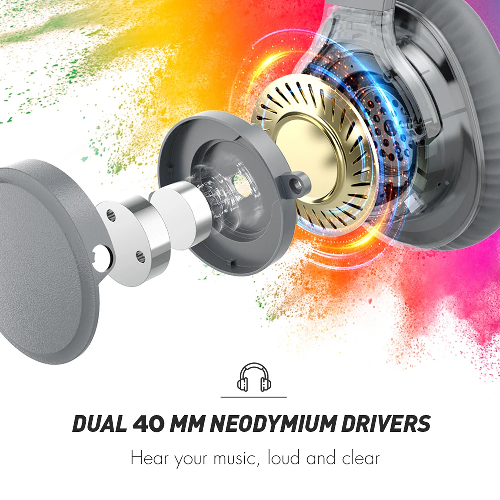 Bluetooth-наушники Mpow H7, беспроводныепроводные, с микрофоном, мягкие наушники, 40 мм, для ПК, ТВ, телефонов