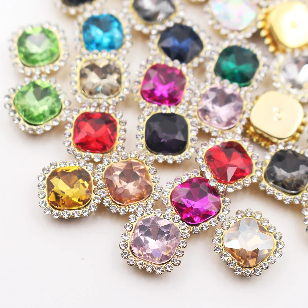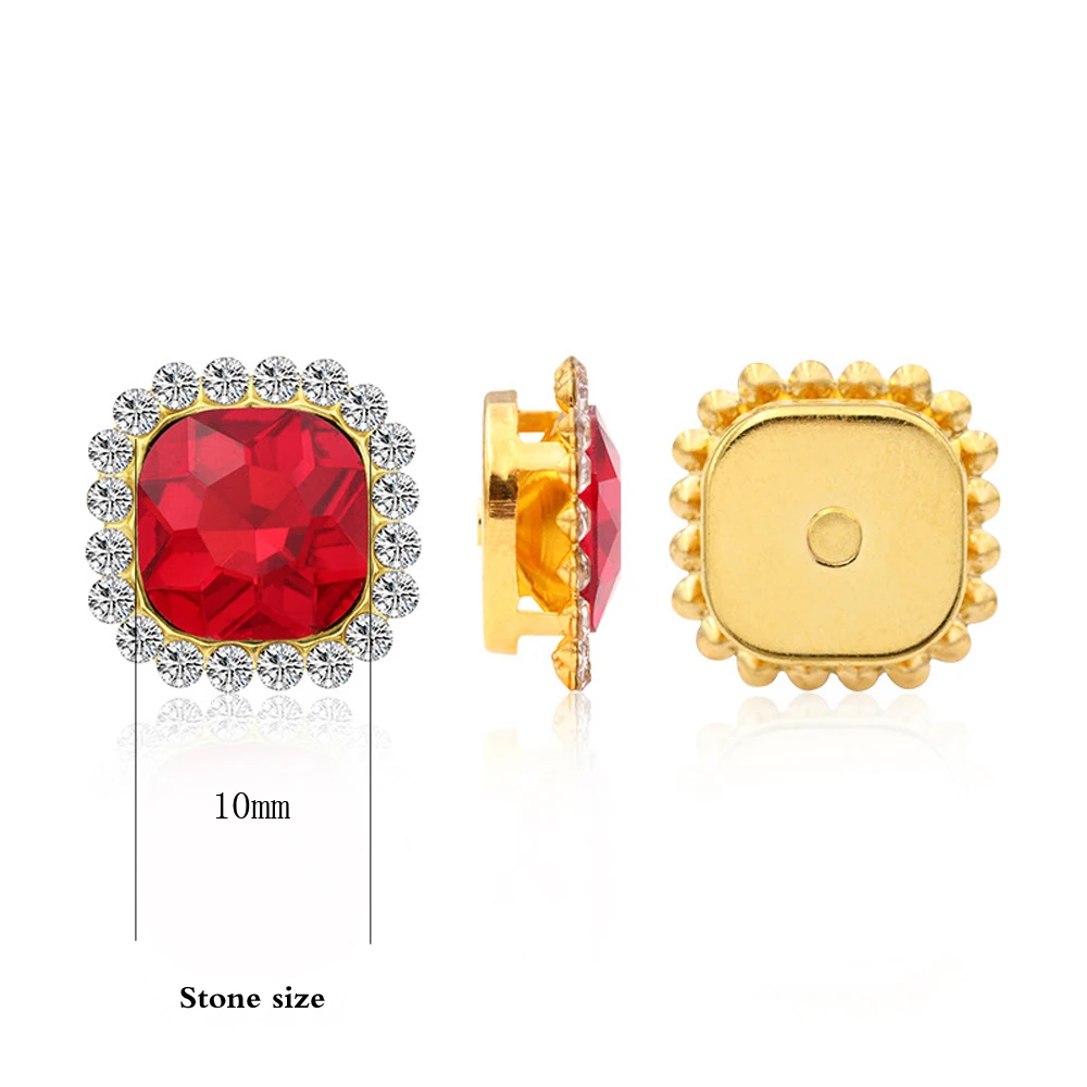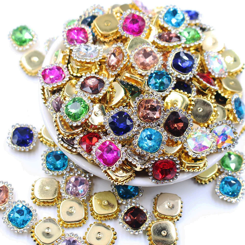 Квадратные Блестящие кристаллы 10 мм с плоской задней Золотой основой, бриллиантовые Стразы для рукоделия, пришивные стразы, отделка