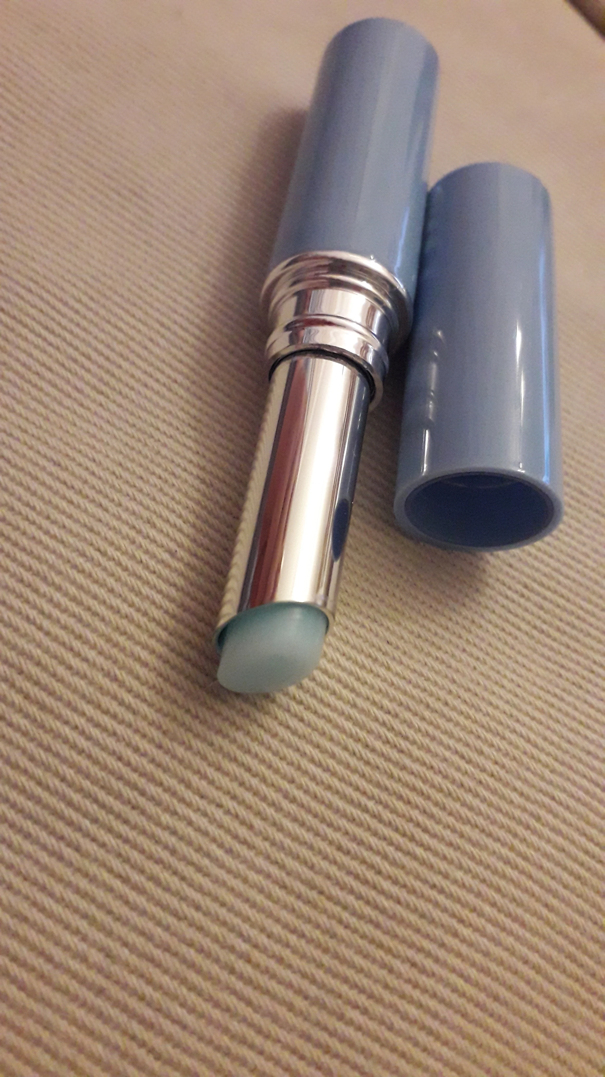 Обычная гигиеническая помада. Исчезает с губ быстро. Внутренний колпачек в крышке не закреплён. Крышка снимается, колпачек остаётся на помаде.