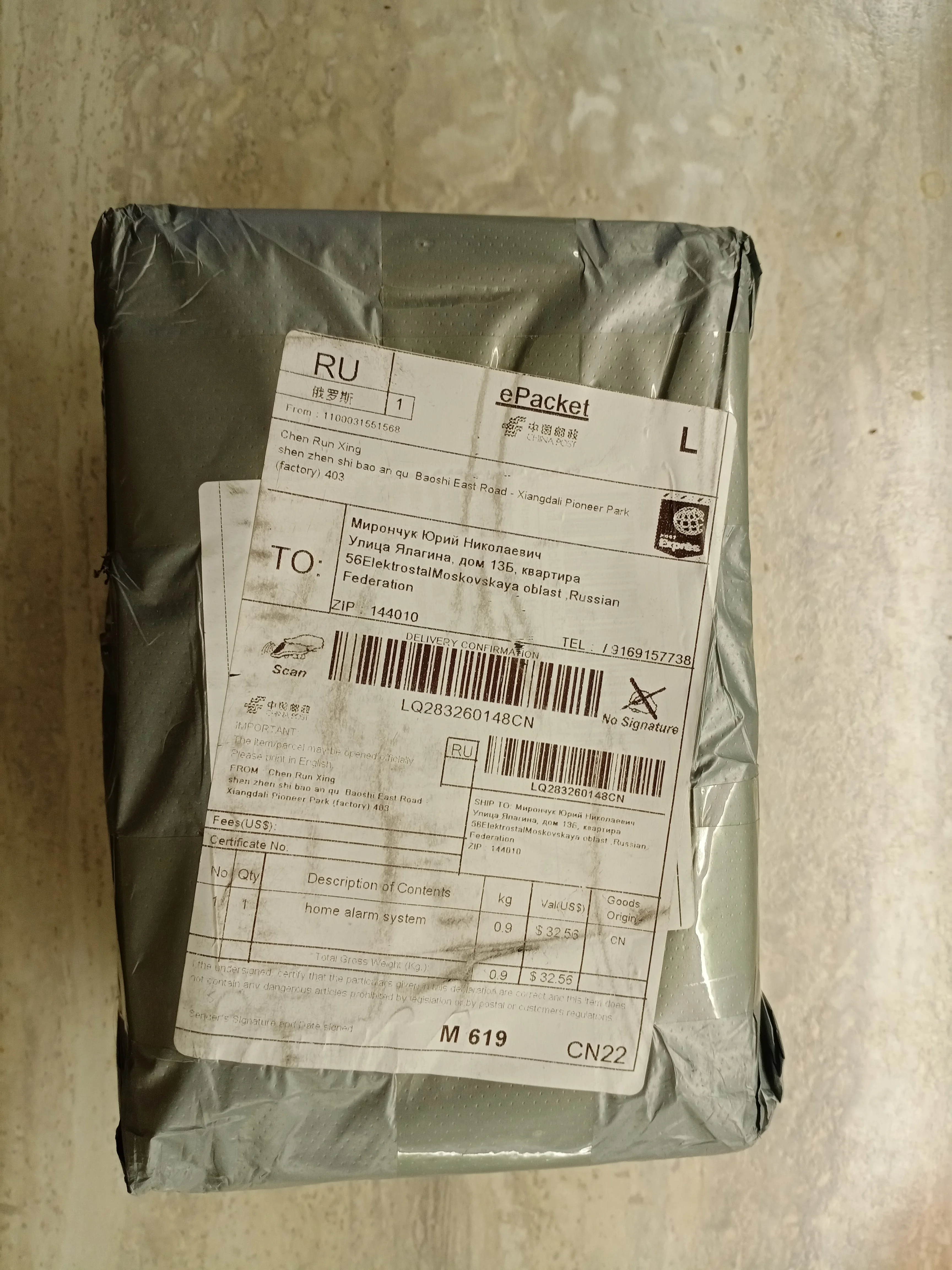 Заказ был из двух посылок. Первая различные датчики. Вторая комплект сигнализации WiFi GSM. Первая дошла в Подмосковье за 20 дней. Вторая шла больше двух месяцев . Хорошо продавец подбадривал что все выслал жди. Товар упакован хорошо. Дошел не поврежденным. Согласно заказа. Спасибо продавцу и службам доставки. В работе товар еще не пробовал.