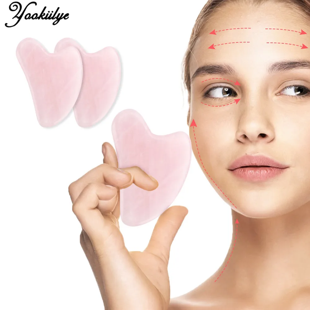 1 шт. натуральный розовый кварц нефрит камень Гуа-Ша массаж инструмент акупунктуры спа терапии скребок массажер соскабливающая доска для лица и тела