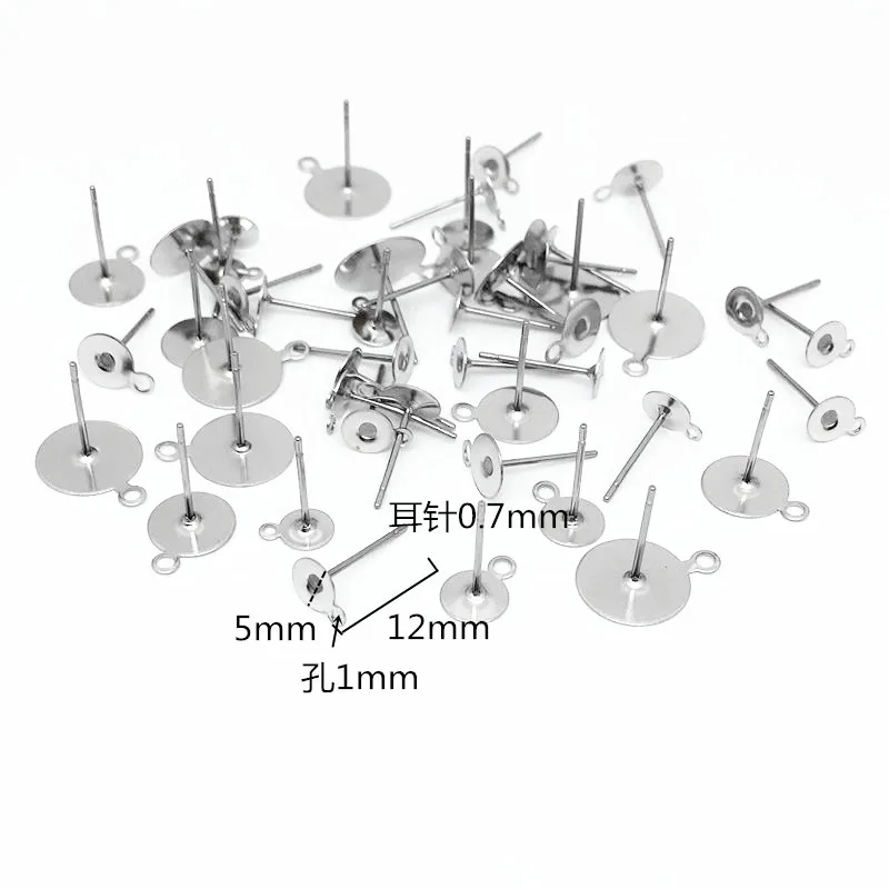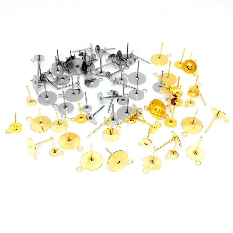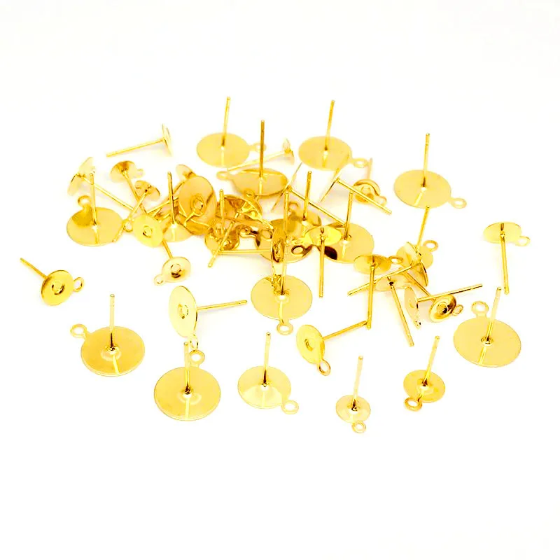 50 шт. Хирургическая Плоская накладка из нержавеющей стали золотого и серебряного цвета с петлей для сережек, пустая шпилька 5 мм 6 мм 8 мм, фурнитура для сережек, поставщик