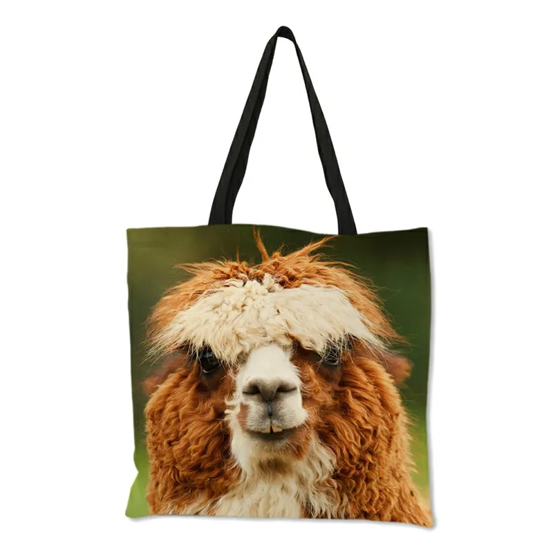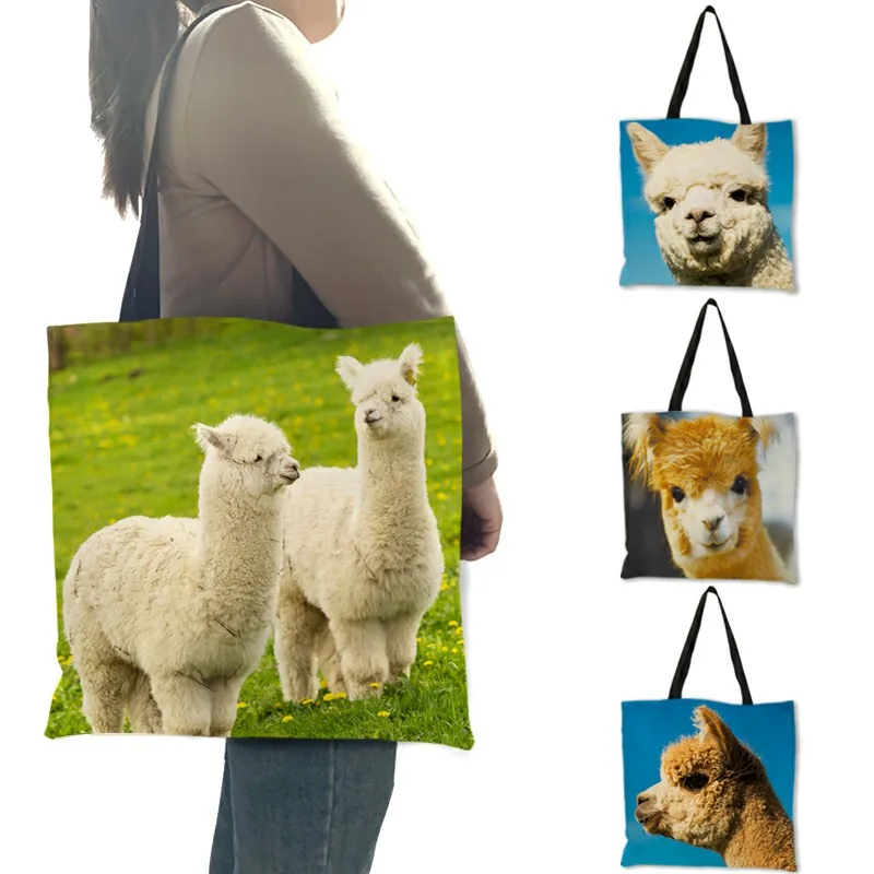 Уникальные льняные сумки многоразового использования для покупок для женщин с принтом альпаки, тканевая сумка-тоут, сумки для леди, школьные дорожные пляжные сумки