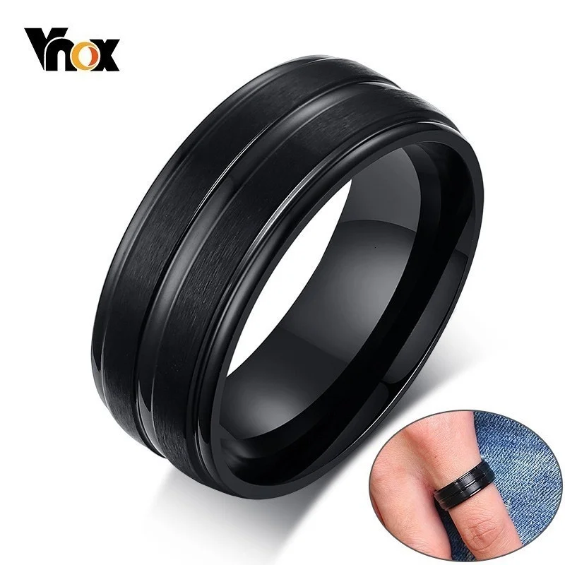 Классическое мужское обручальное кольцо Vnox, черное кольцо из нерж...