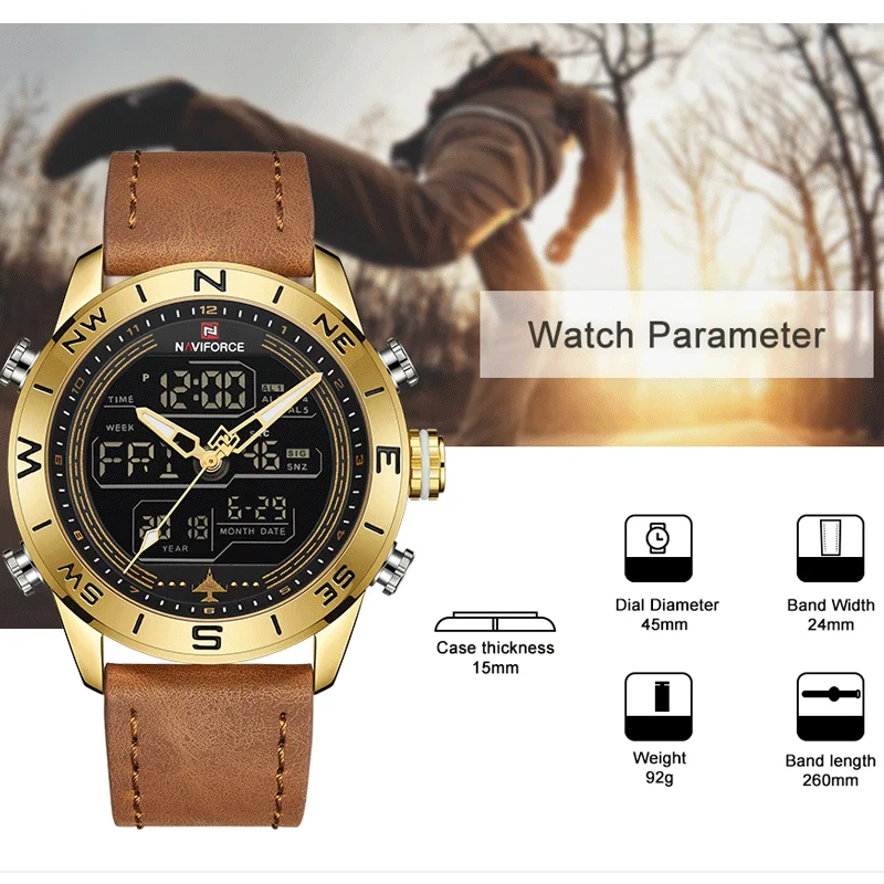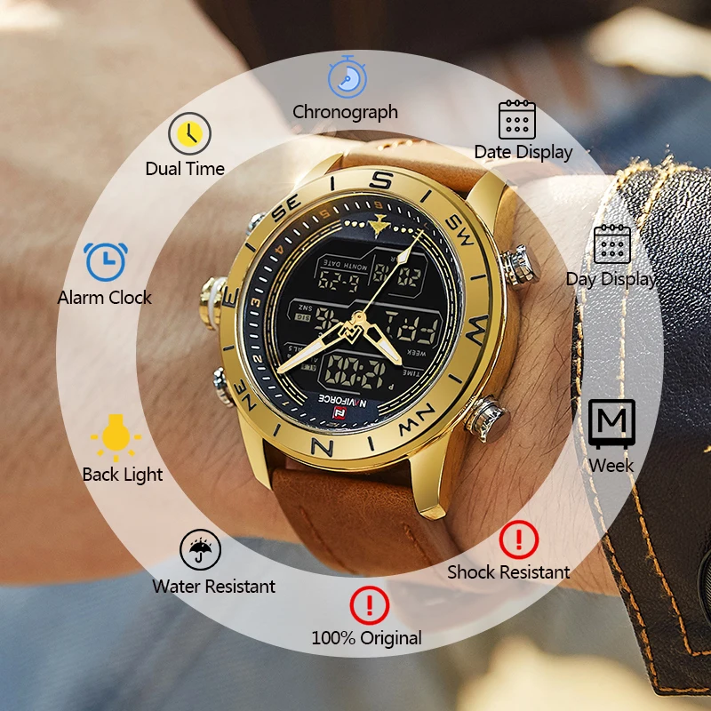 Часы NAVIFORCE мужские, армейские, армейские, спортивные, светодиодные, цифровые, кварцевые, 9144