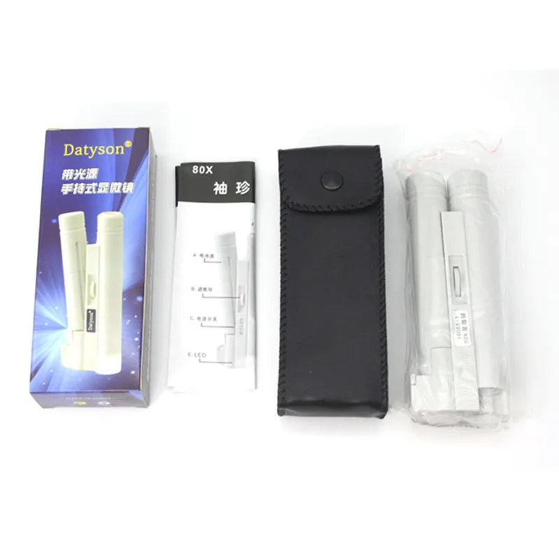 Портативный карманный микроскоп Datyson 80X с белсветодиодный ным источником светильник, V-образный ручной микроскоп