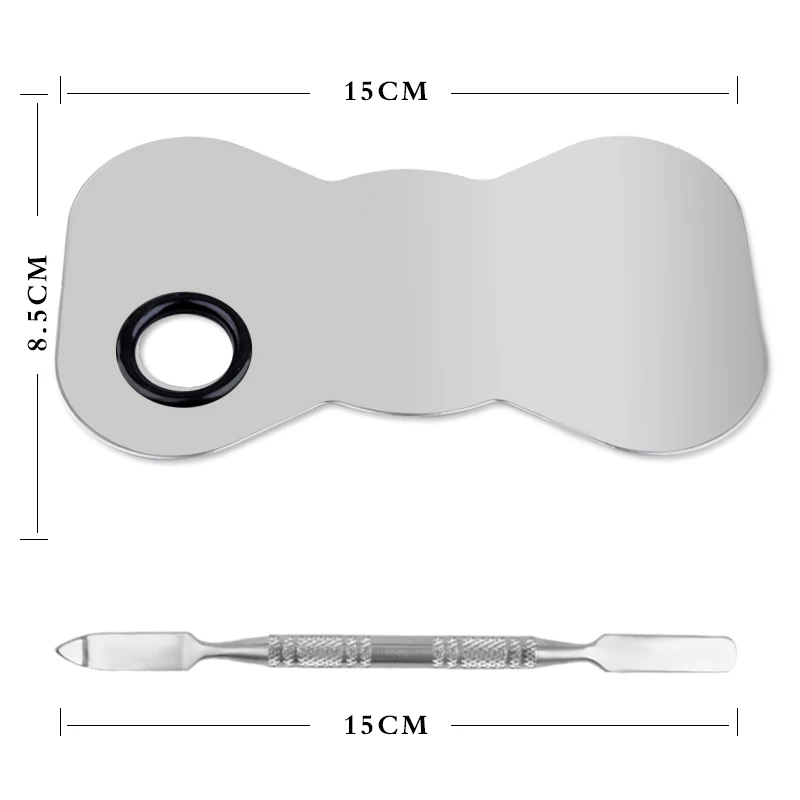 Миксер для макияжа из нержавеющей стали, Миксер для ногтевого дизайна, смешивающая тарелка, основа, тени для век, палитра для смешивания теней для век + шпатель различной формы