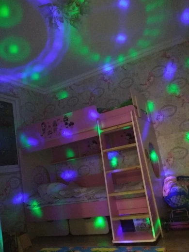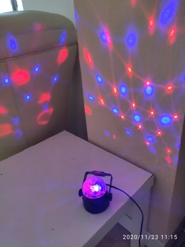 Когда пришел такой маленький диско-шар я удивилась, но...у него куча режимов, свет плывет по всем стенам комнаты. Подарил очень приятное настроение на вечер. Пришел очень быстро, даже не знаю за что тут можно снизить, все супер - 5/10!