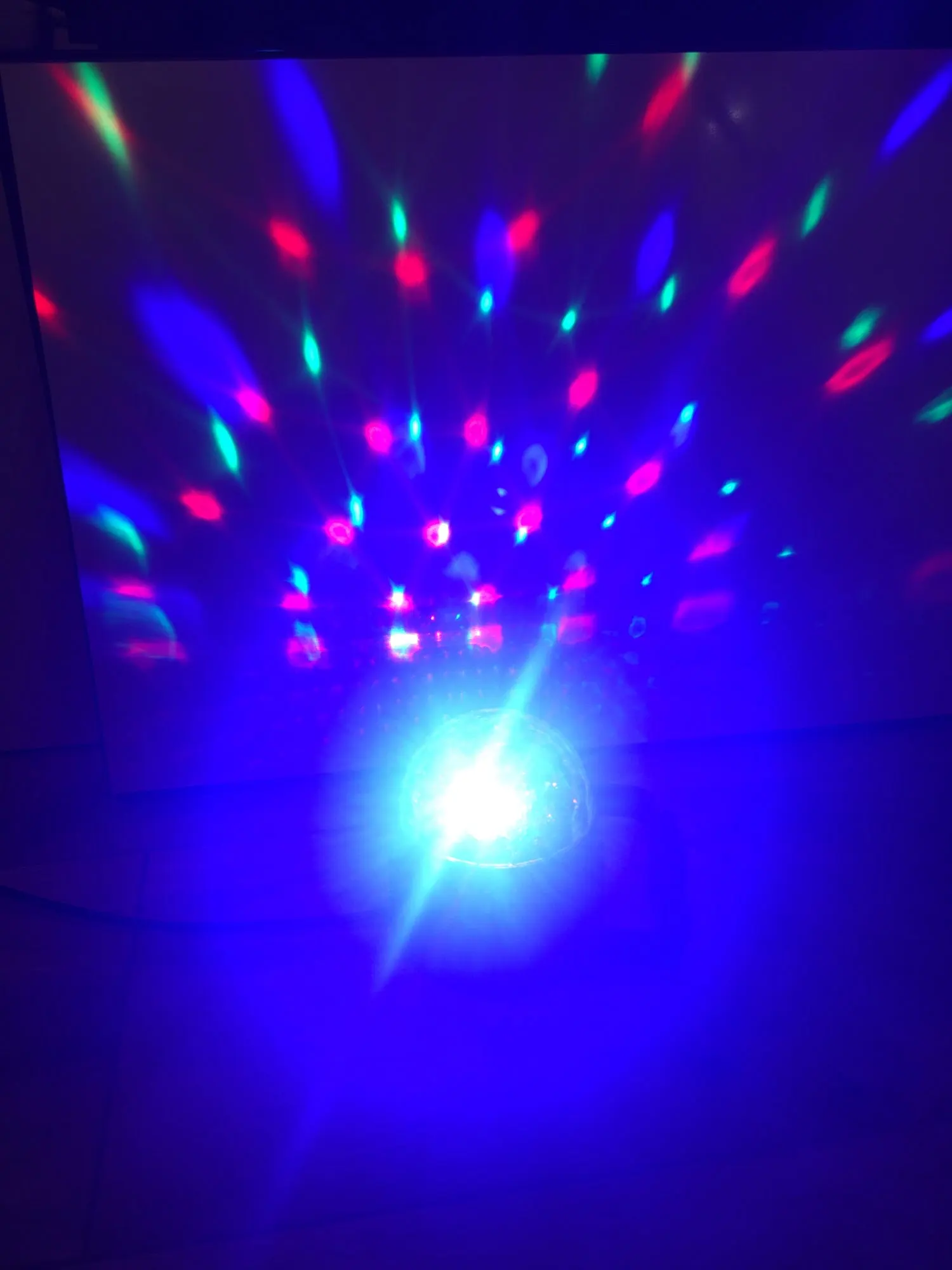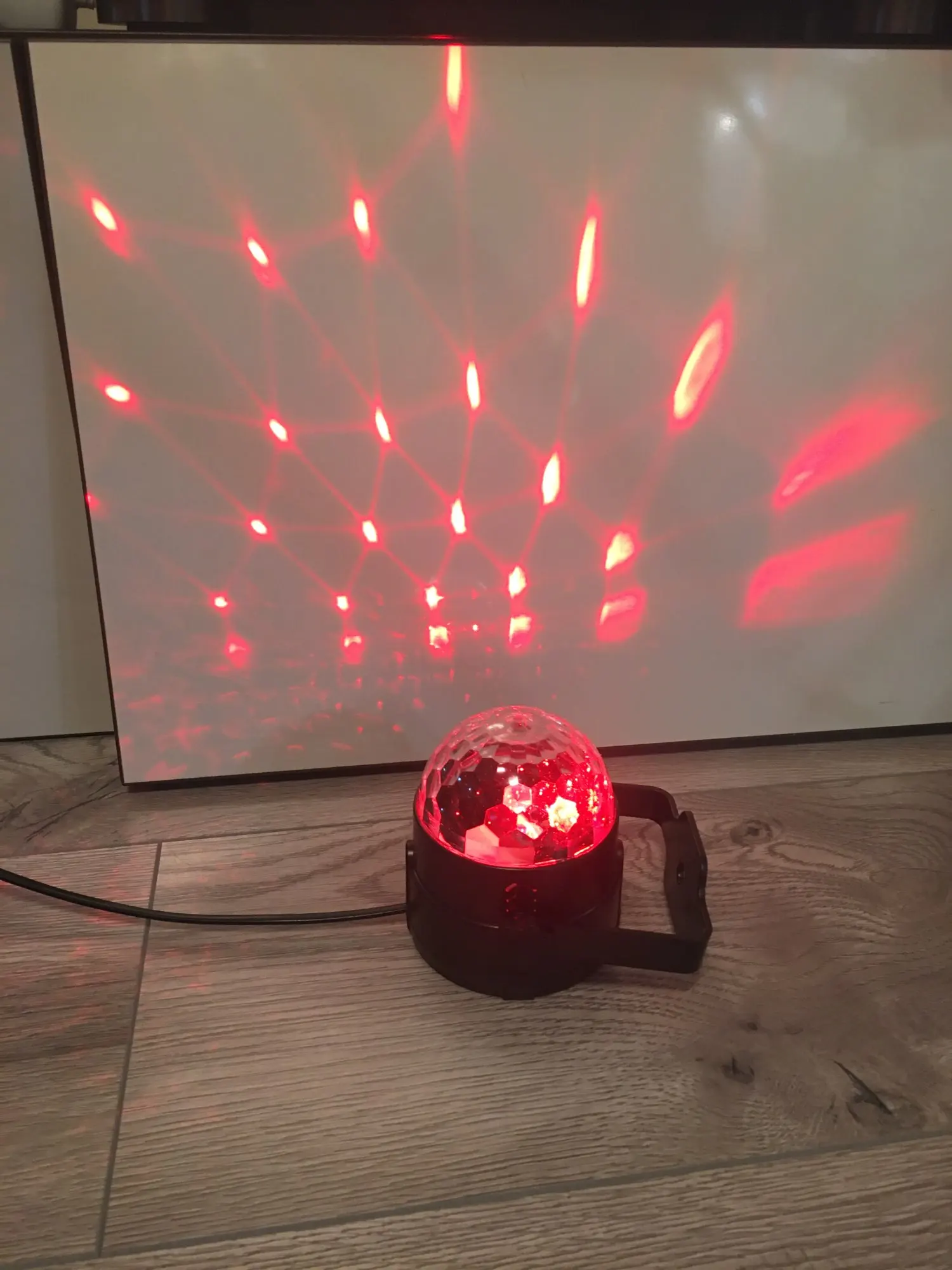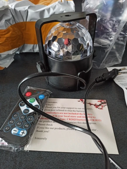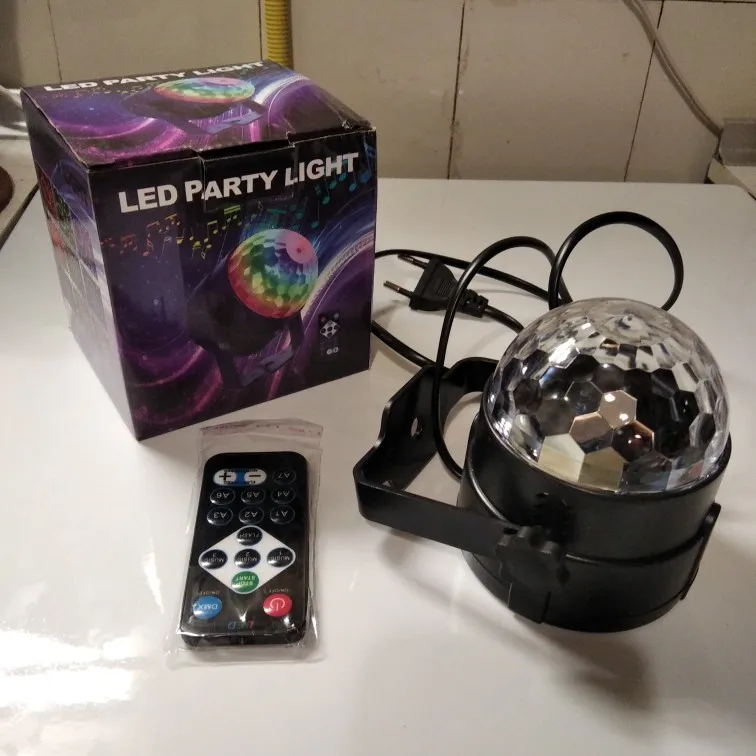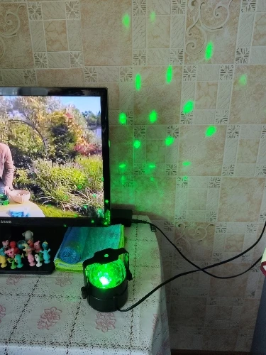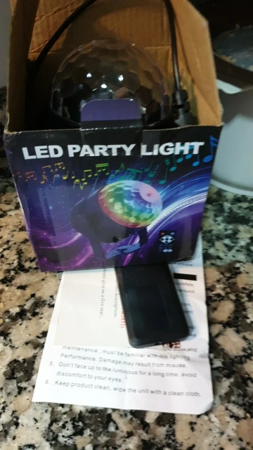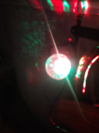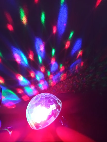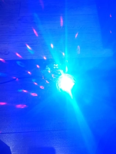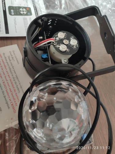 Прикольный диско шарик, светит хорошо, все работает. Чтобы начал светить под музыку, надо почти совсем прислонить его дырочкой к колонке, тогда начинает реагировать. В целом нравится, для дома для детей - самое то) за такие деньги) доставка быстрая, упаковка хорошая.