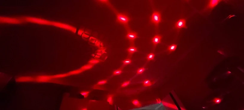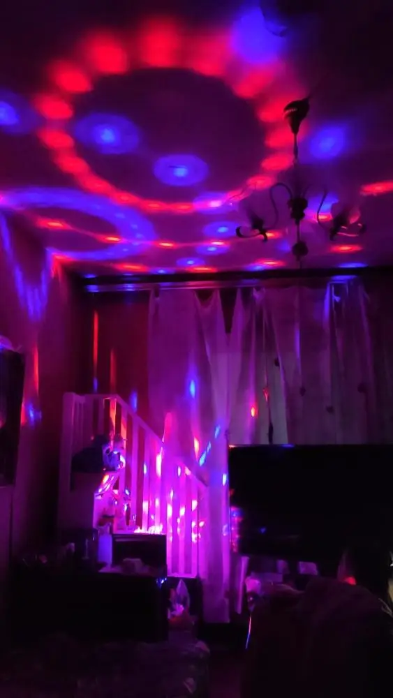 Замечательный дискошар! Даёт большой радиус, можно применять и для большого помещения и в небольшой комнате. Интересная светопрограмма. Есть пульт управления. Рекомендую и товар и продавца! И очень быстрая доставка. Менее двух недель.