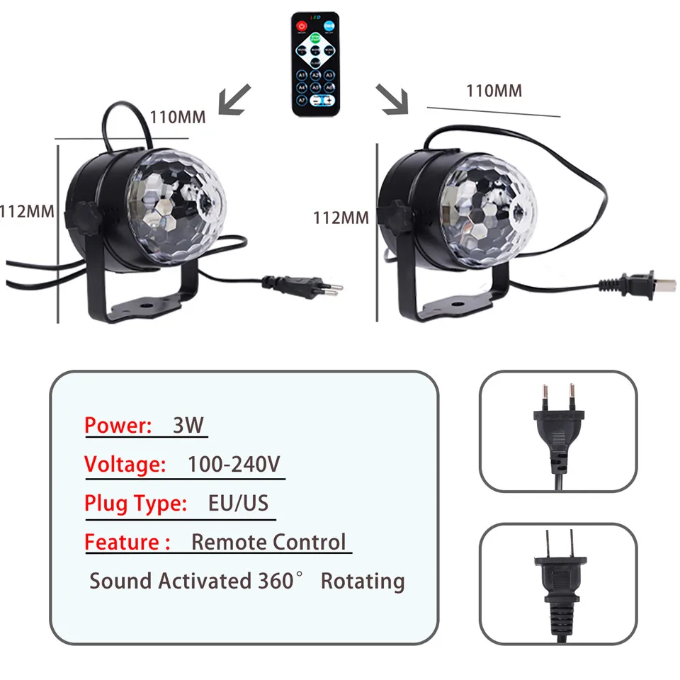 Диско-Шар, вращающийся, 3 Вт, 3 светодиода, 3 светодиода