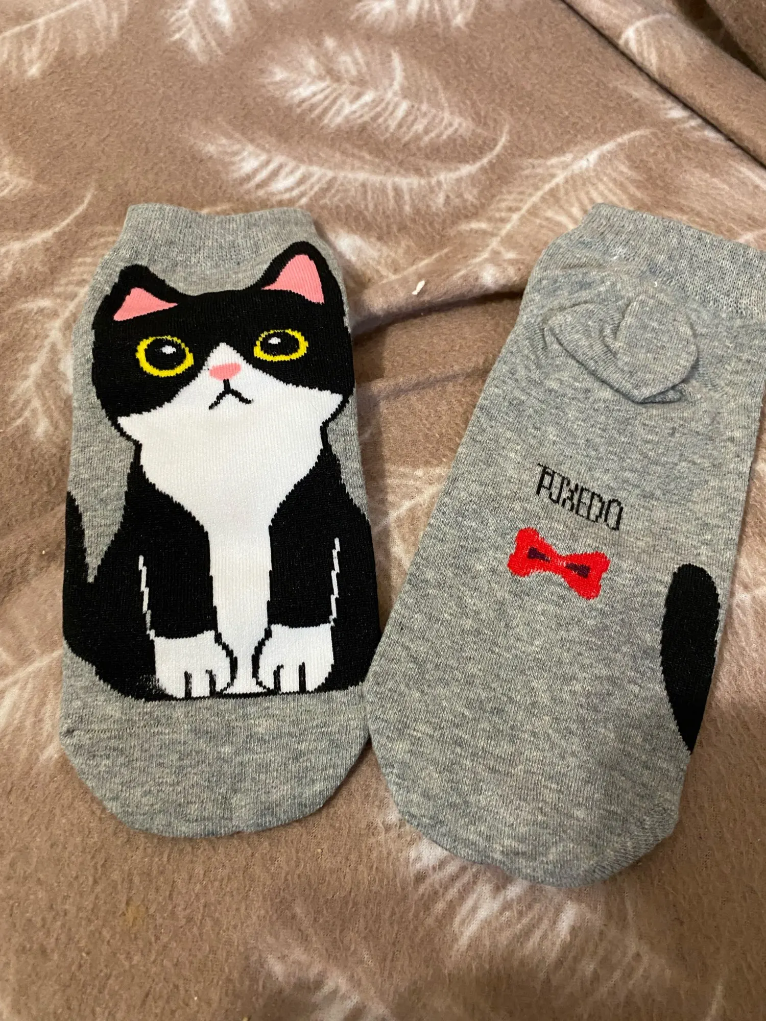 1 пара, женские разноцветные хлопковые короткие носки в виде животных