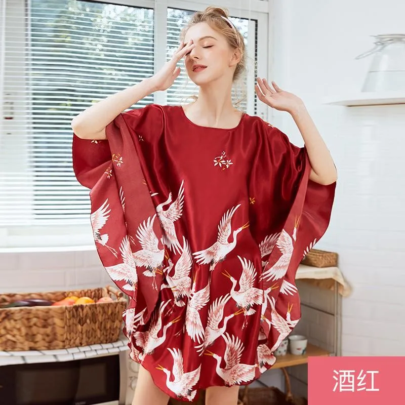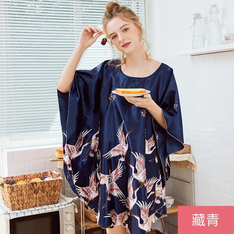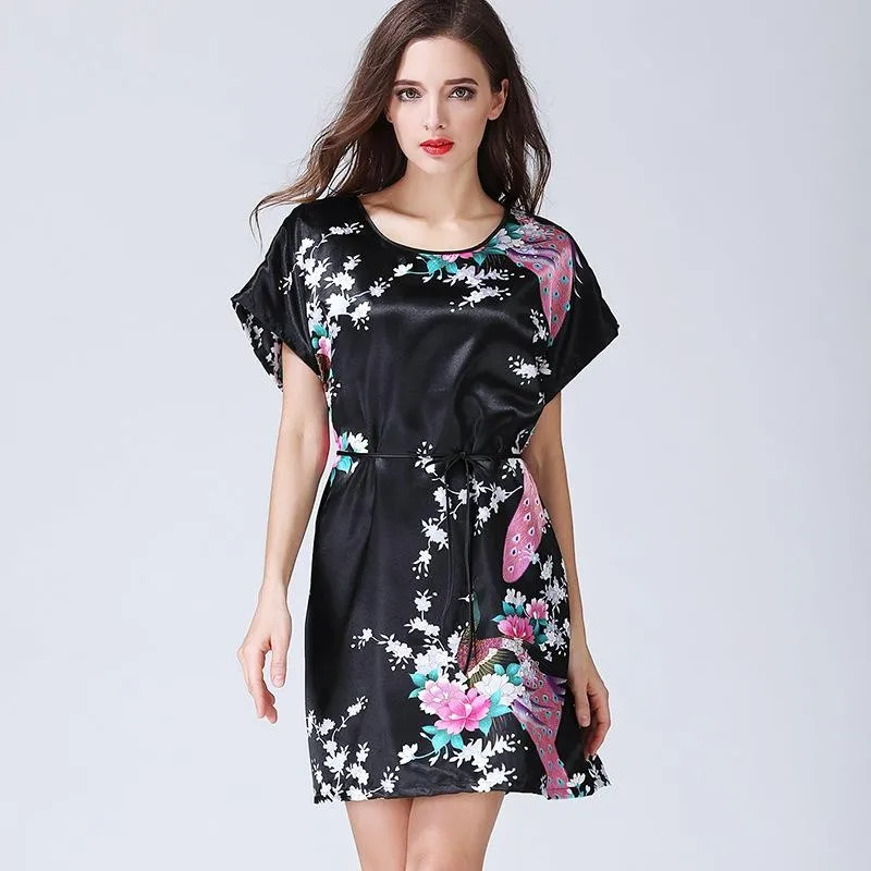 Халат женский из искусственного шелка, ночная сорочка из вискозы, ночная рубашка с круглым вырезом, домашняя одежда, ночное белье, пижама