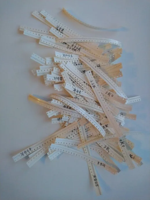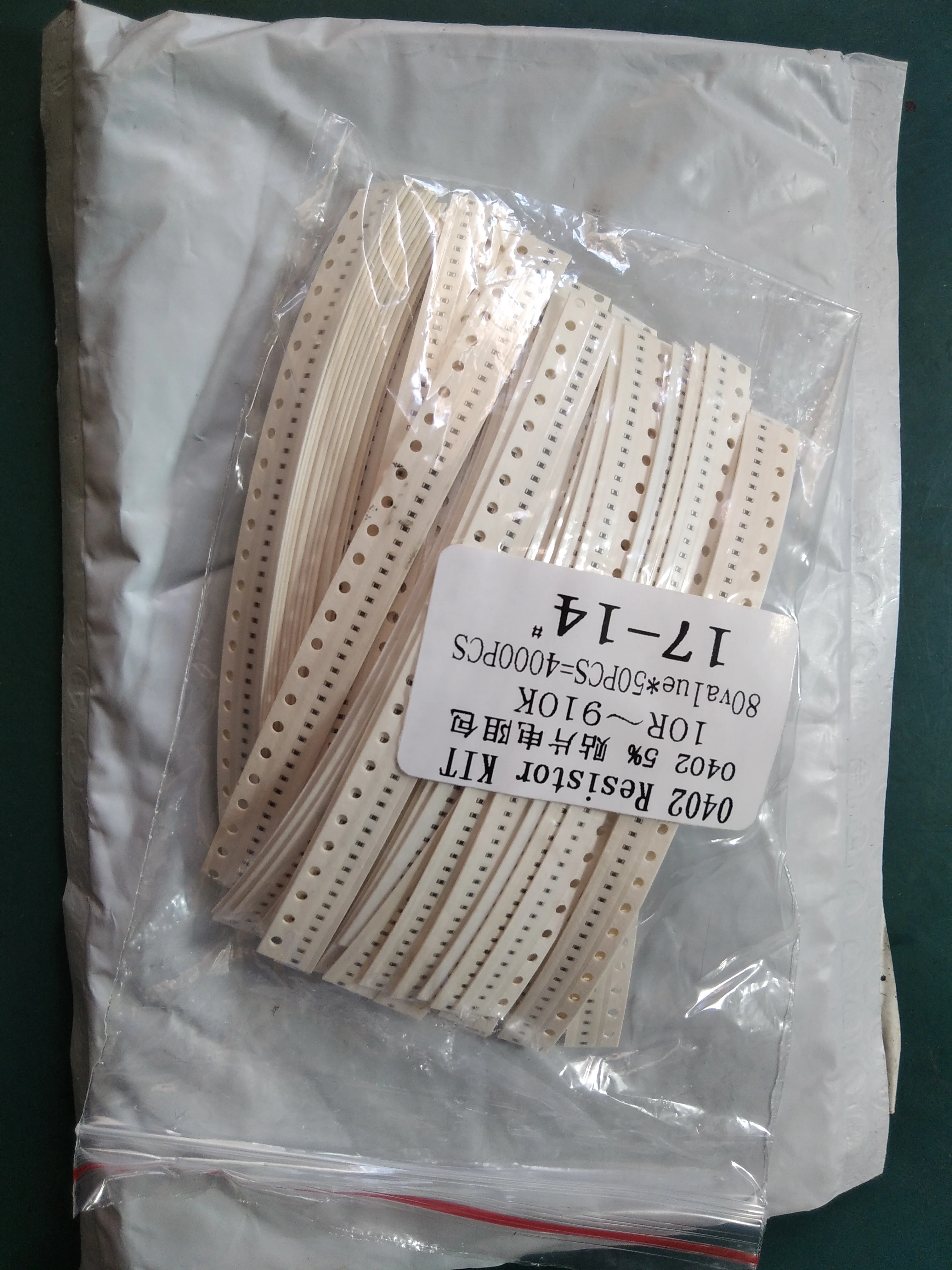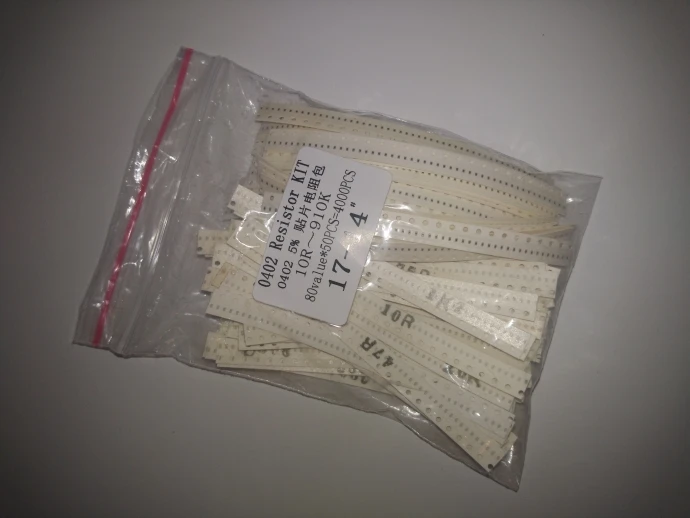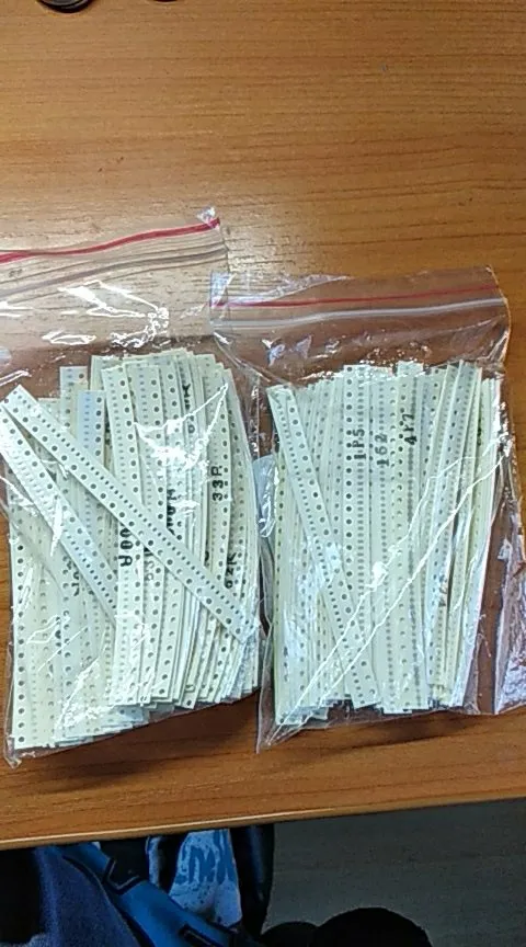 Размеры резисторов 0,5 мм х 1,0 мм, вручную трудно паять, слишком маленький размер. Доставка быстрая.