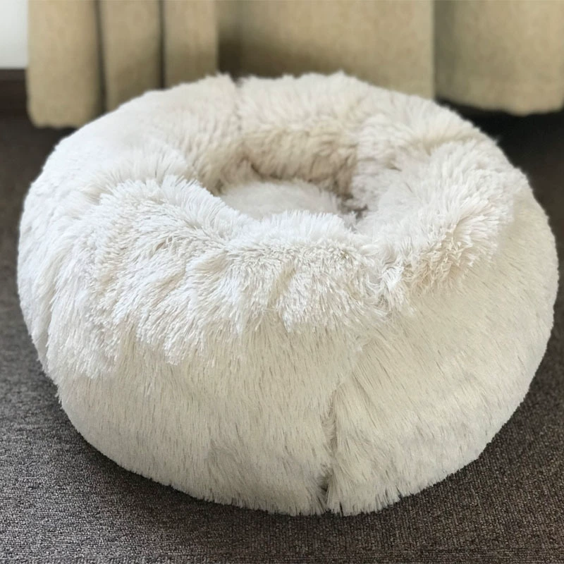 Кровать для собаки, круглая кровать для кошки, зимний теплый спальный мешок для собаки, длинная плюшевая супермягкая кровать для питомца, подушка, коврик, товары для кошек