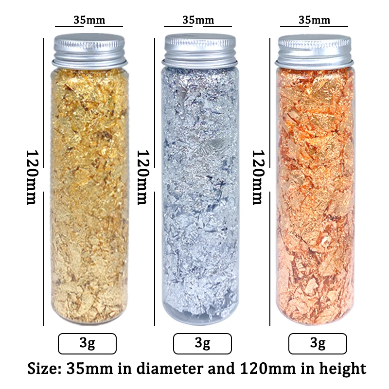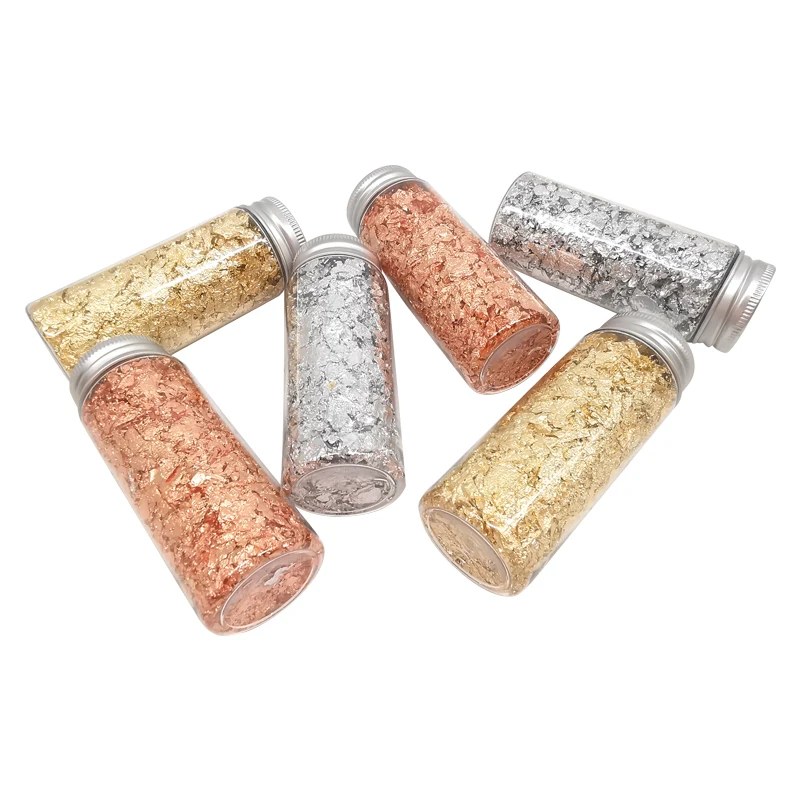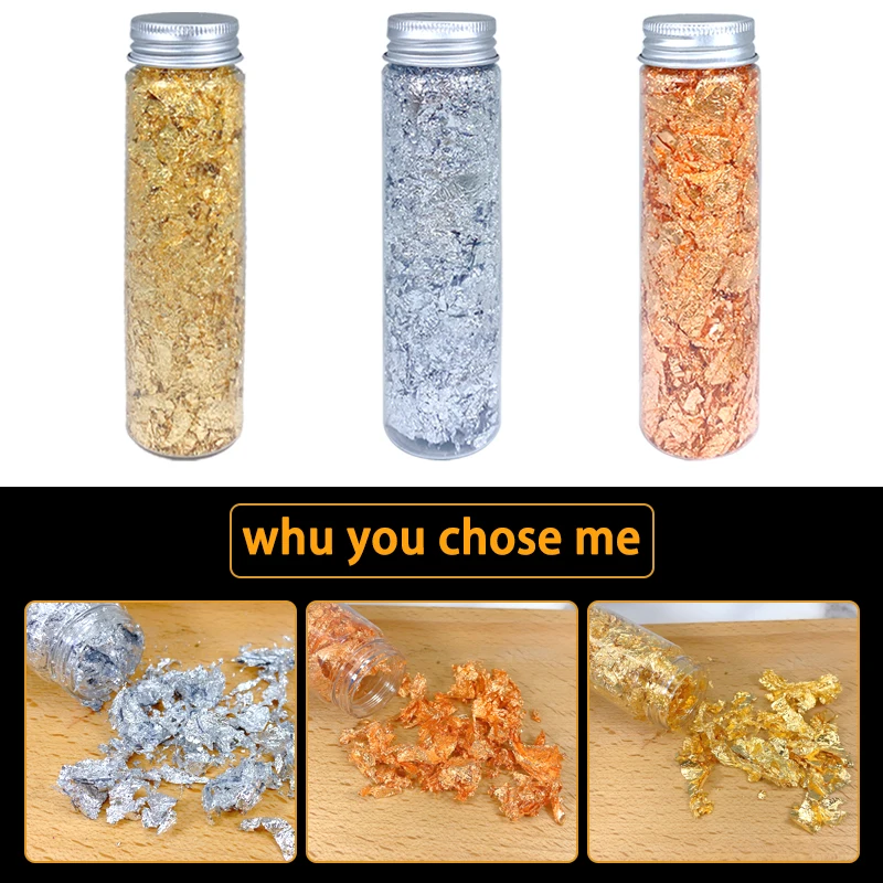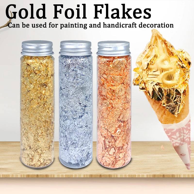 С золотыми, серебряными и медными цветами, хлопья из золотой фольги не легко выцветают и окисляются, они могут создать потрясающий Блестящий текстурированный эффект, чтобы ваши поделки выглядели особенными.