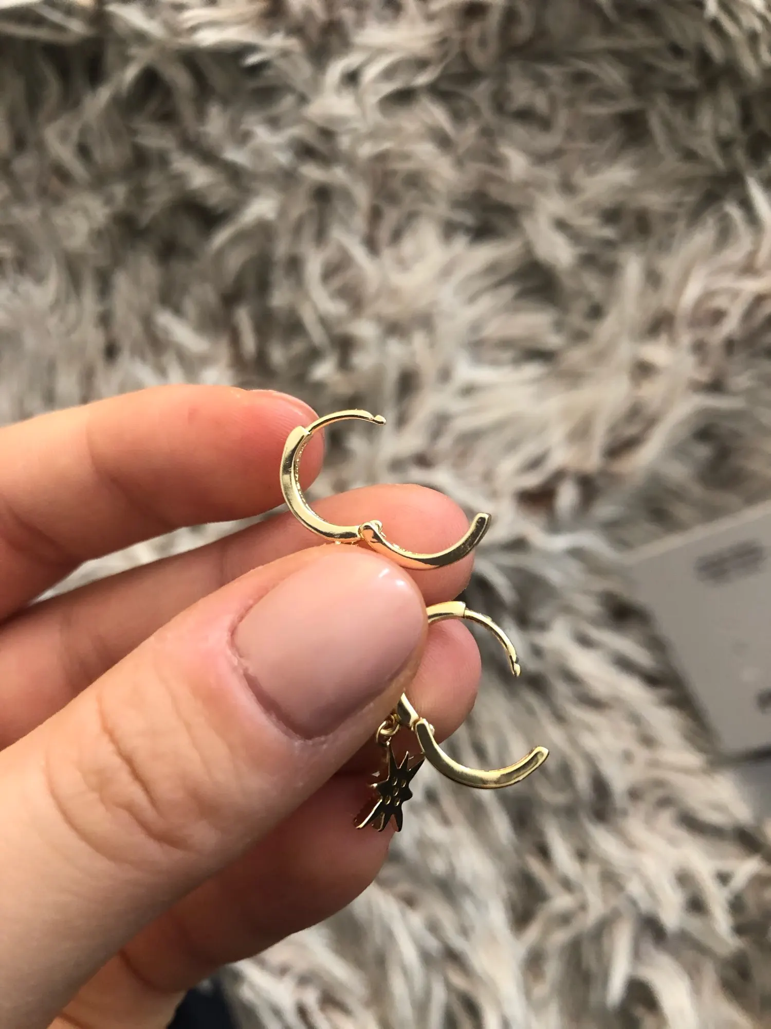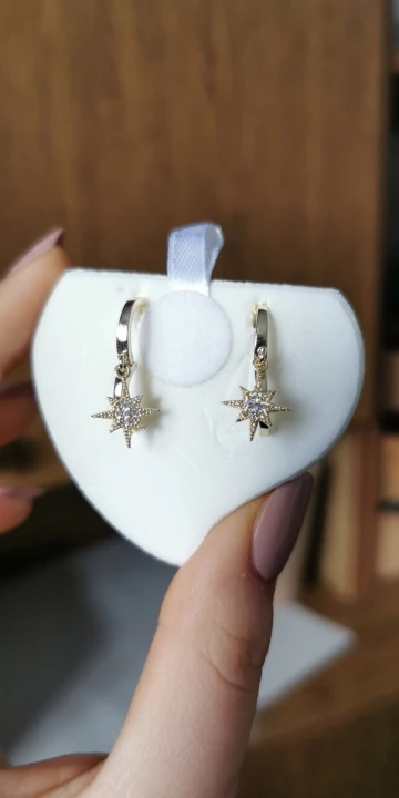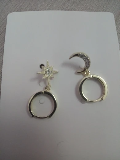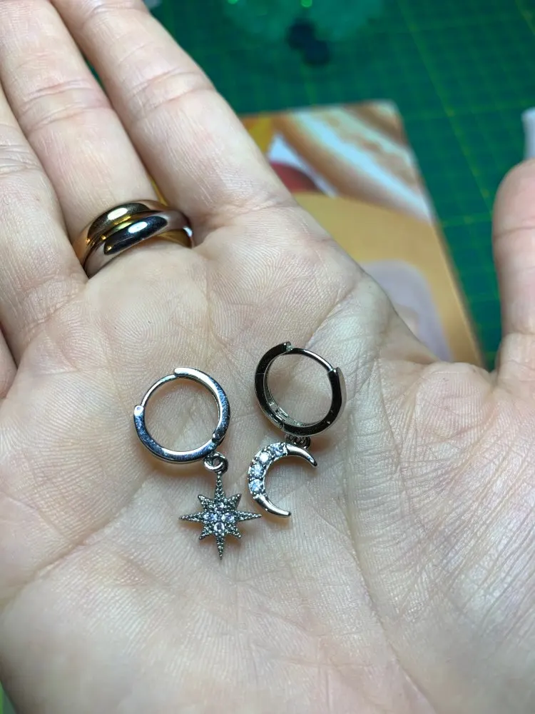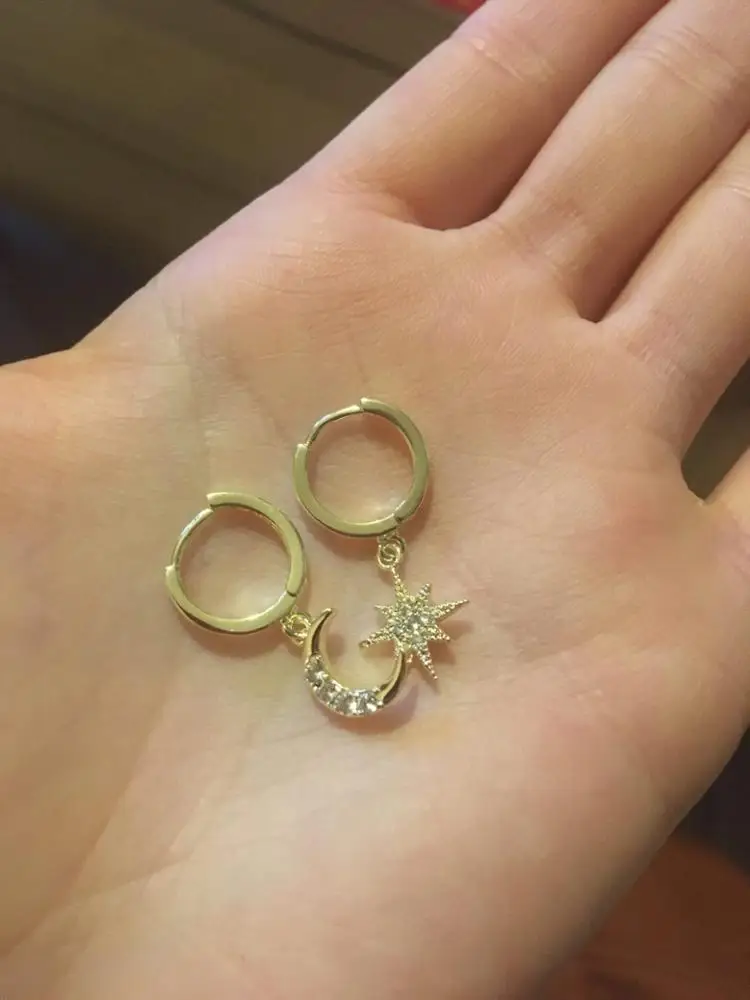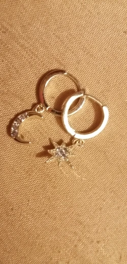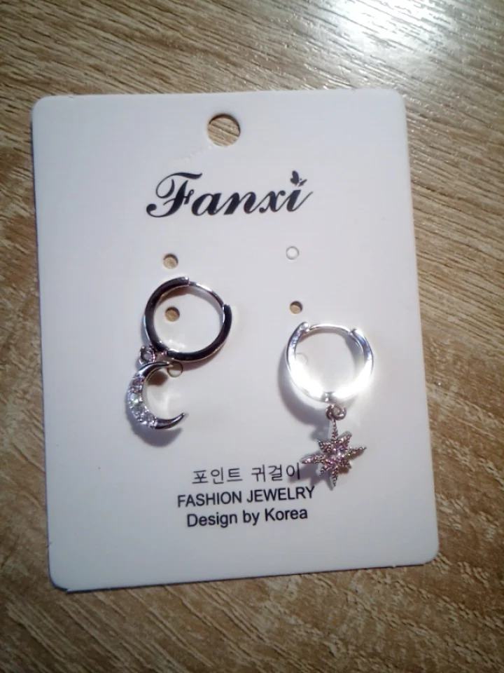 Пришли две звезды вместо звезды и месяца. Поэтому четыре звезды. Не стала открывать спор. Сережки один в один как на картинке. Удобный замочек сзади, выглядят невероятно мило)