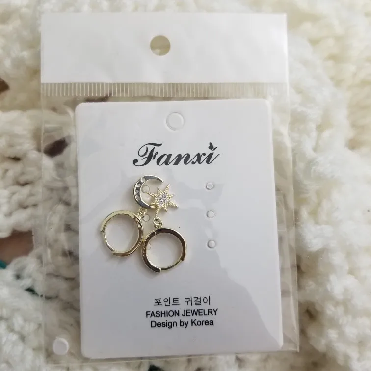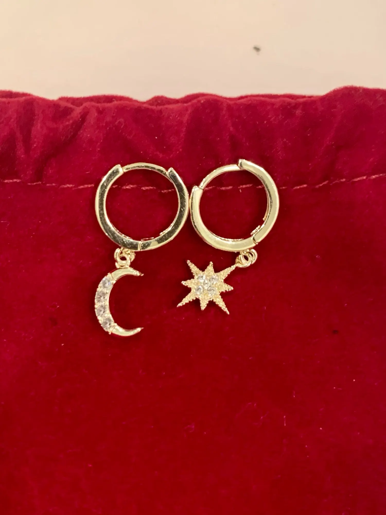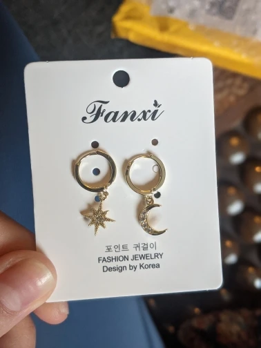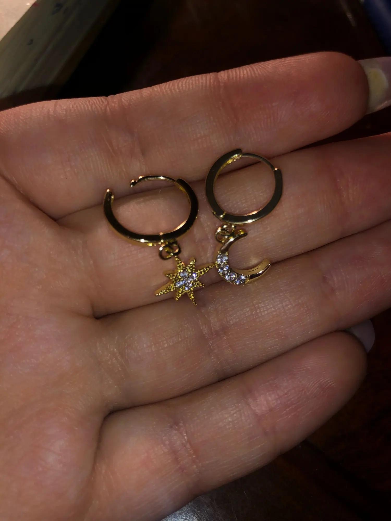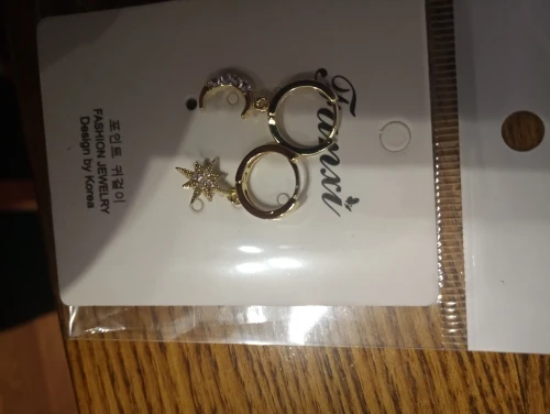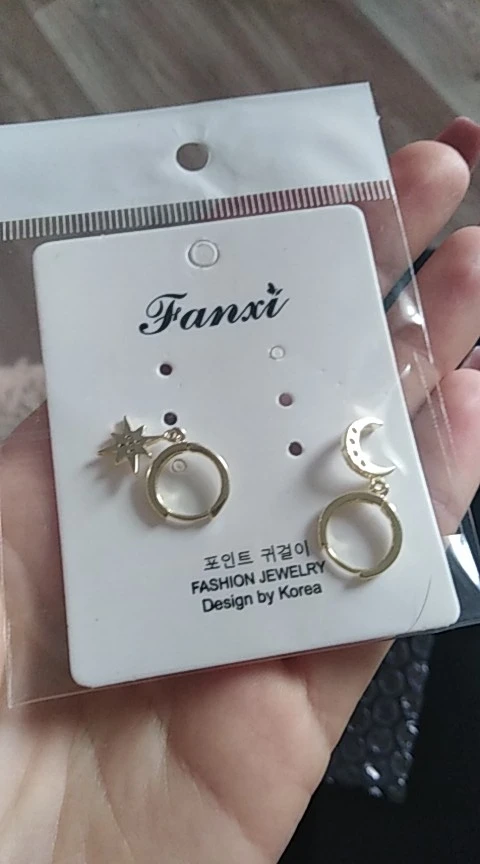 Пришли две звезды вместо звезды и месяца. Поэтому четыре звезды. Не стала открывать спор. Сережки один в один как на картинке. Удобный замочек сзади, выглядят невероятно мило)