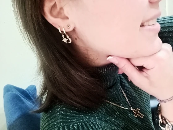 Абсолютно Потрясающие маленькие серьги, они мне понравились как в золотом, так и в серебристом цвете! Так же хорошо, как вы можете видеть на фотографиях. Носите их 24/7! Настоятельно рекомендую этот магазин. Быстрая доставка и высокое качество продукции. Большое вам спасибо за это :)