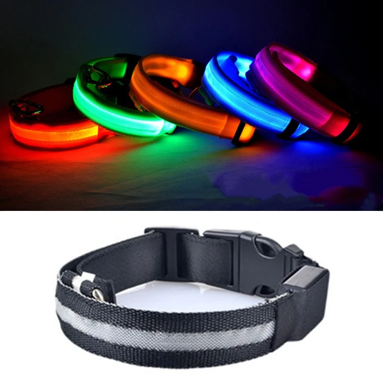 Нейлоновый светодиодный ошейник для собак, ночная безопасность, мигающий светится в темноте поводок для собак, светящиеся флуоресцентные ошейники для питомцев, 1 шт.