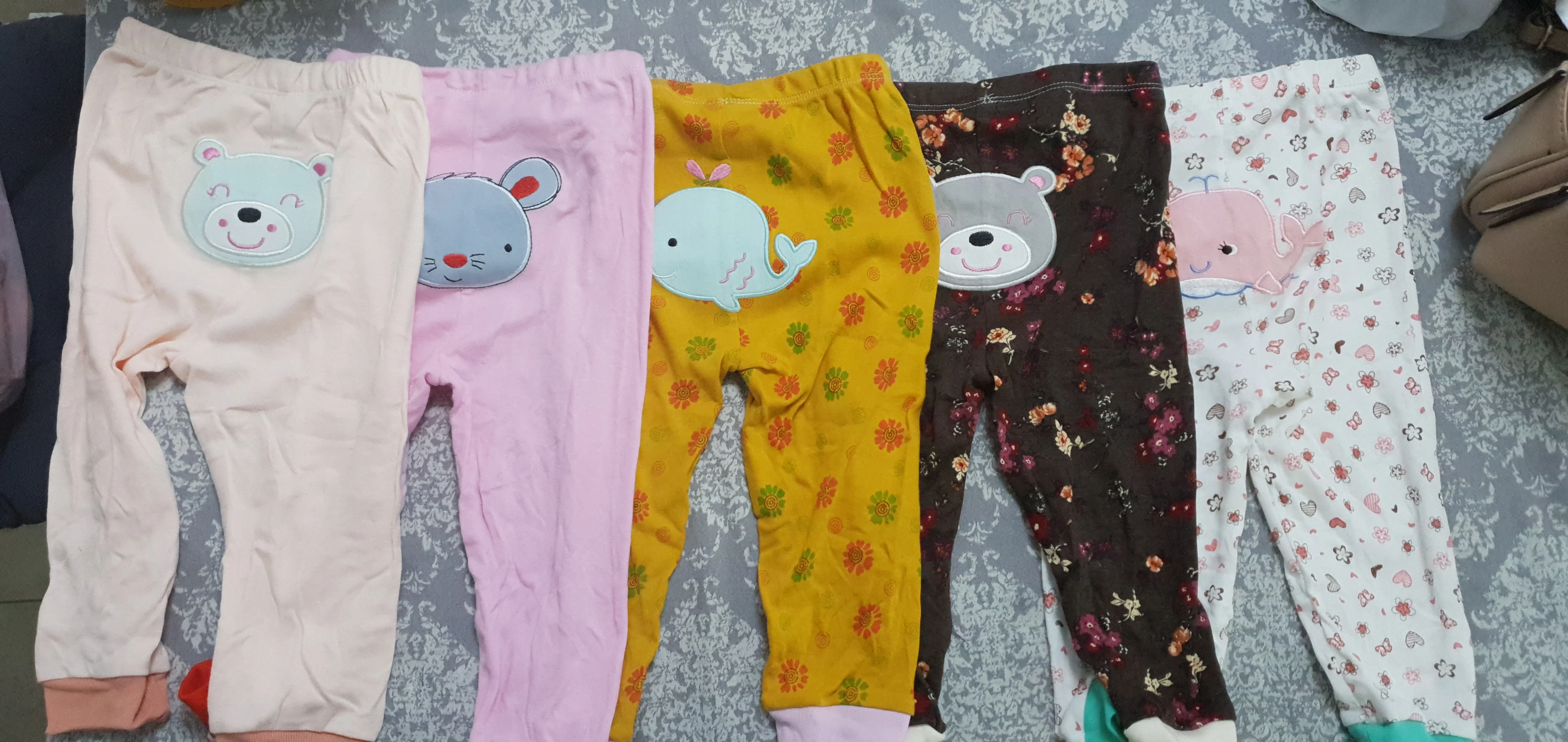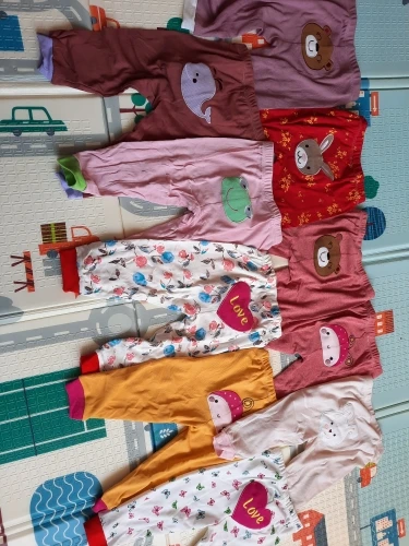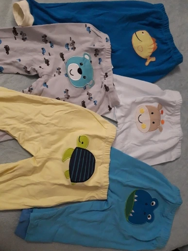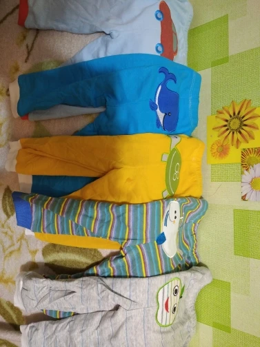 получили штанишки. дошли быстро, Али быстро доставил, а магазин где-то неделю отгружал. Штанишки не плохие. трикотаж очень тонкий, скорее теплая весна-лето. одни штаны вообще из другого материала, как-будто не хлопок( бежевые). Синтетика какая-то скользкая и холодная на ощупь. (на фото видно) Выигрывают за счет апликации. нам год и три месяца по размеру чуть-чуть великоваты. с продавцом не общалась.