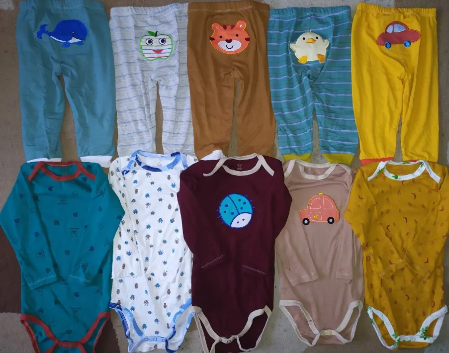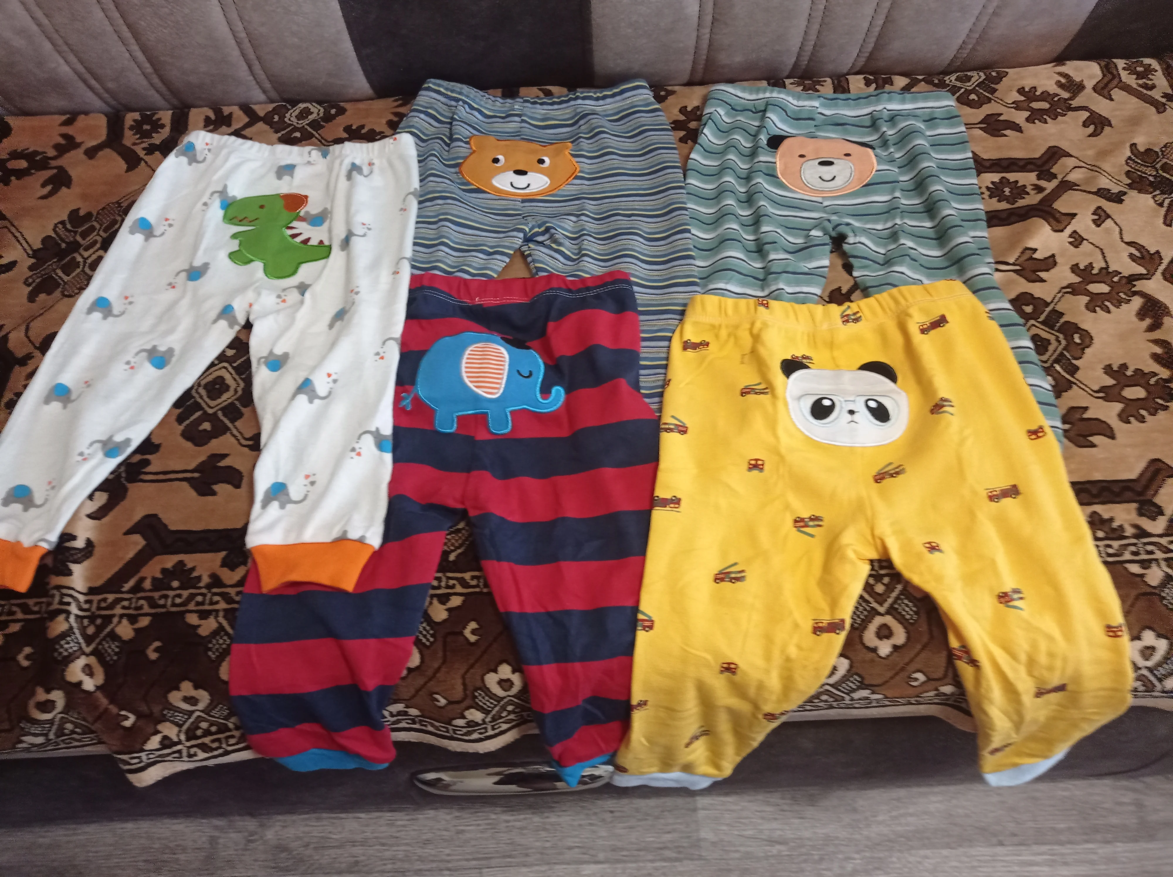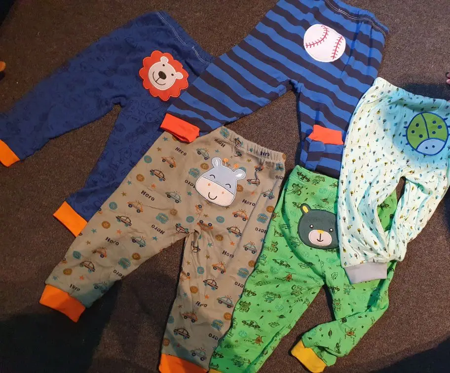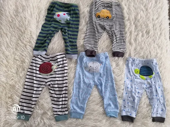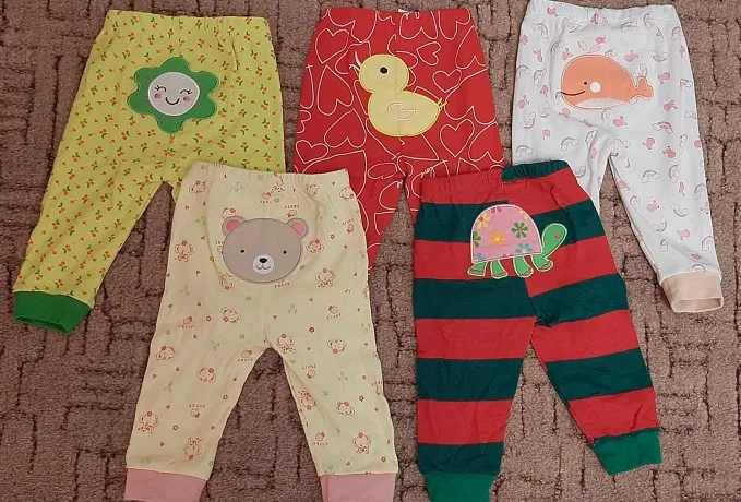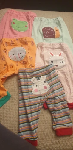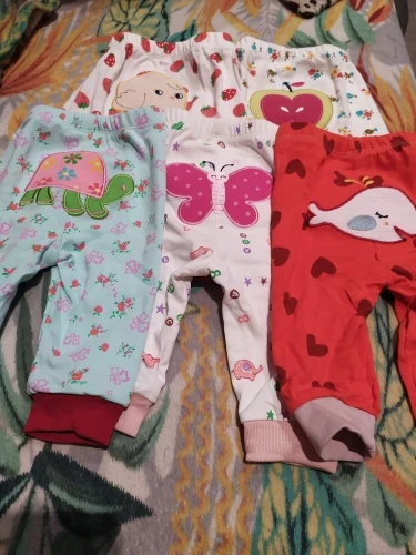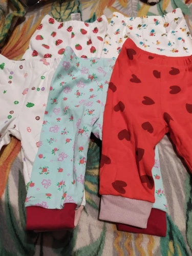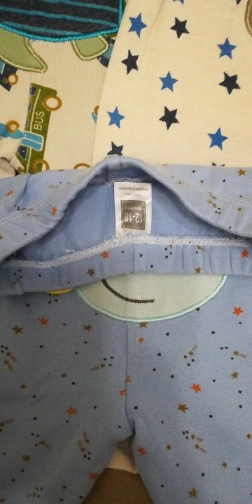 Штанишки отличные! Плотные. После стирки, не растянулись. Доставка быстрая, 3 недели. Ребёнку 8 месяцев, читала предыдущие отзывы, поэтому заказала с запасом, 18 мес. Пришли 12-18 мес. Нам с запасом ещё. Одни штанишки правда меньше чем остальные, хотя на них размер тоже стоит 12-18 мес.