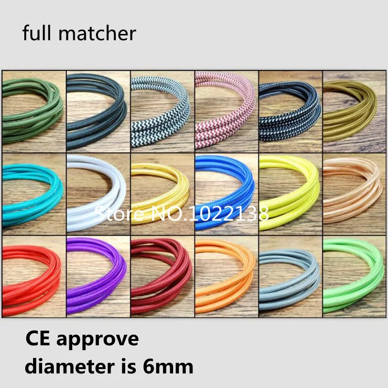 2 м, 3 м, 5 м или 10 м, сертифицированный VDE, 2-жильный круглый текстильный Электрический провод, цветной тканевый кабель, гибкий винтажный шнур питания для лампы