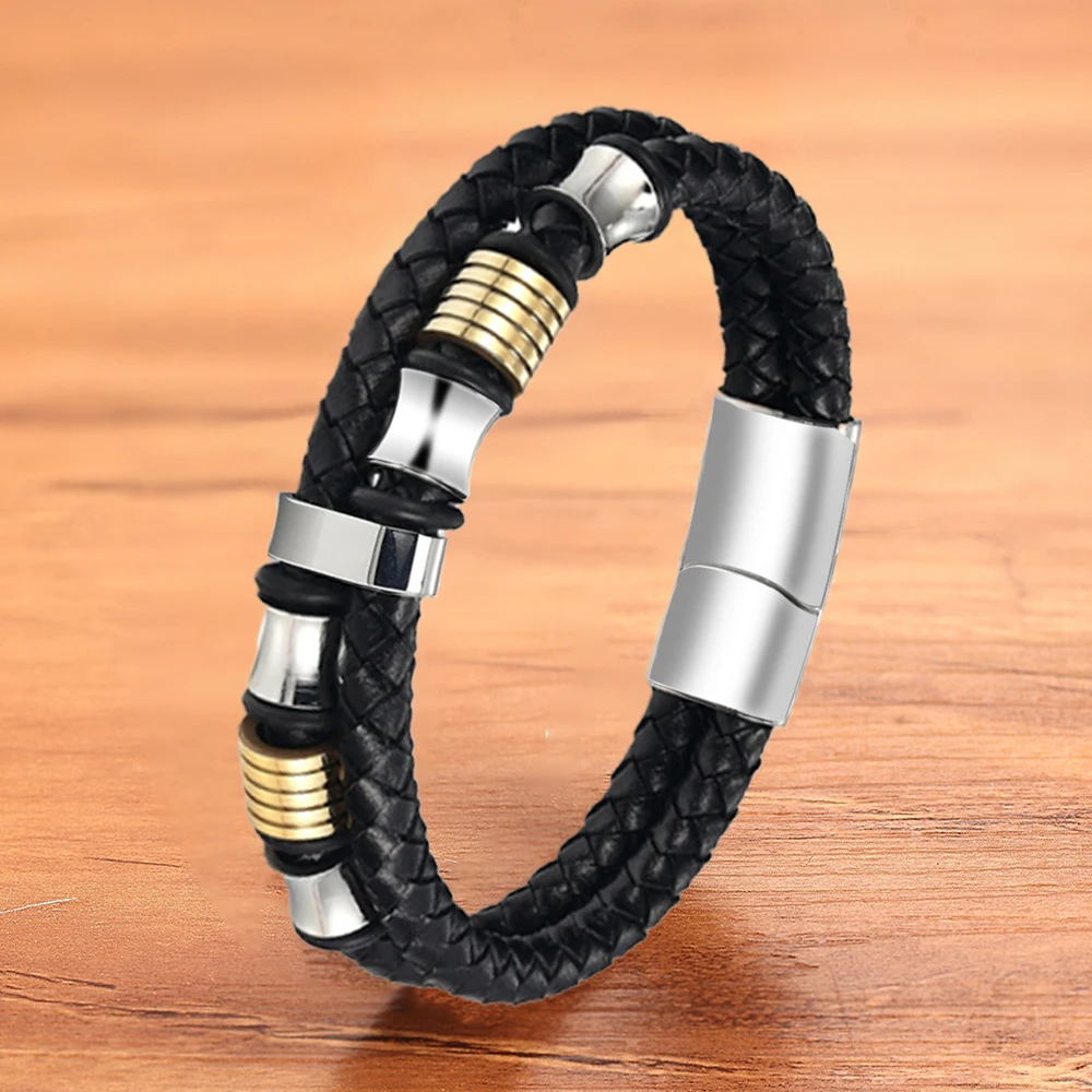 Браслет TYO мужской из нержавеющей стали, с магнитной металлической застежкой, двухслойный, из натуральной кожи, черный, 3 цвета