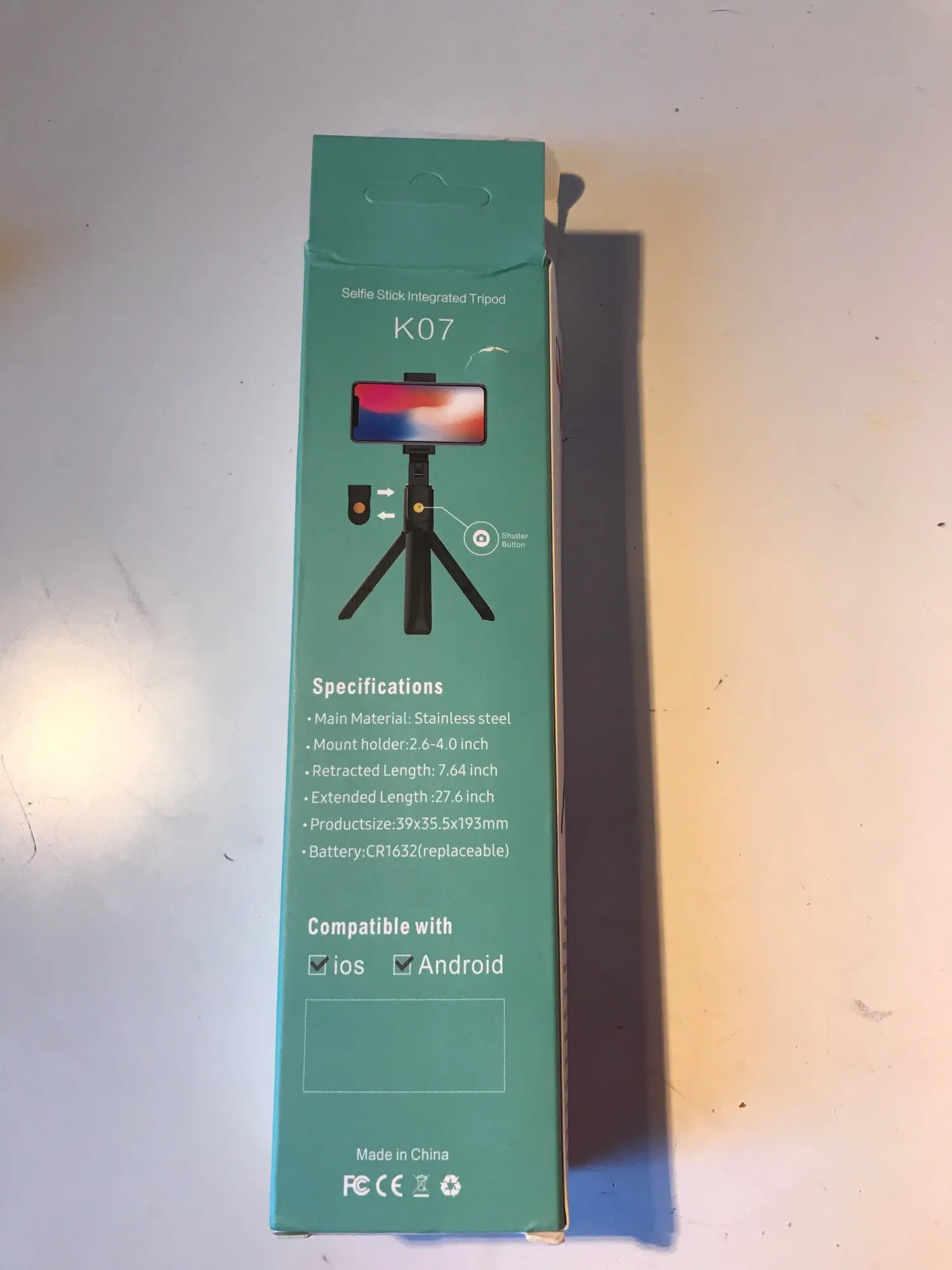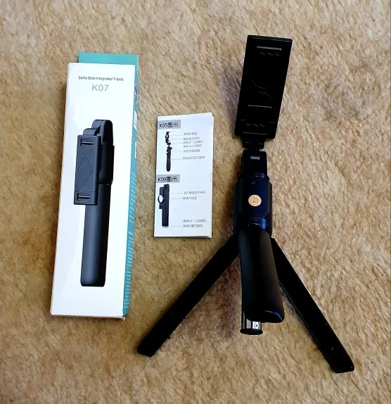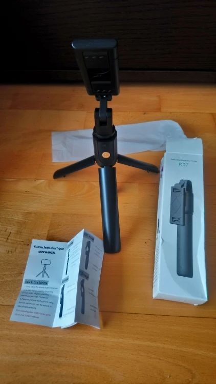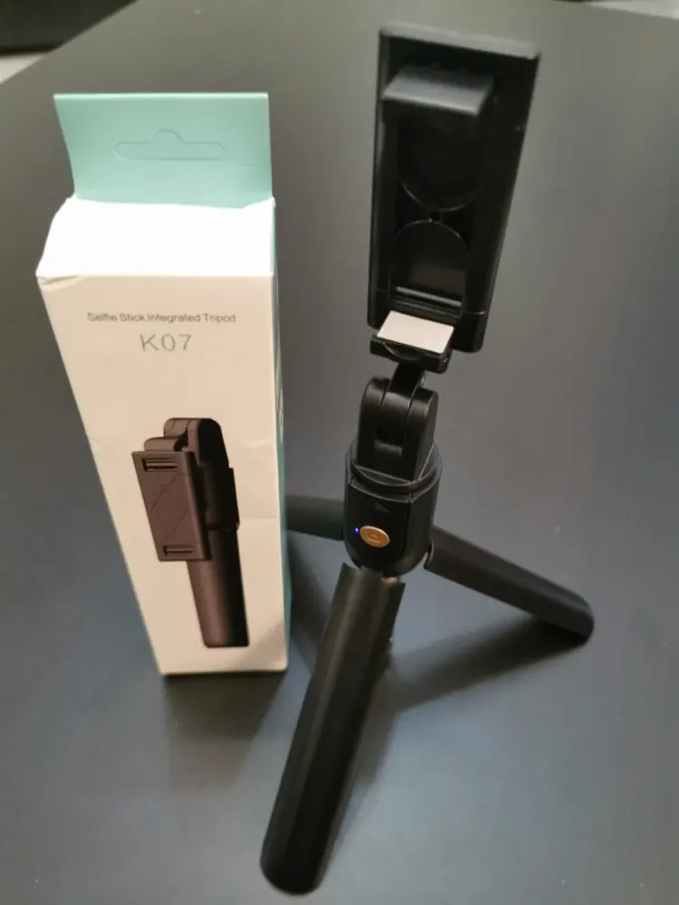 Хорошо работает, удерживайте кнопку палки нажатой в течение нескольких секунд, пока синий светодиодный индикатор не мигнет, на телефоне Включите bluetooth и соедините с SelfieCom и готовы к использованию, легкая обработка поставляется с батареей, в комплект входит стабильный штатив. Хороший продавец прибыл быстро.