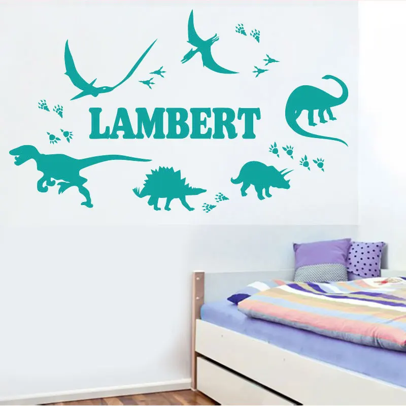 Настраиваемым именем Мир Юрского периода Наклейка на стену динозавр для детей детской комнаты детский сад украшения винилы, декор для стен дома обои DZ02