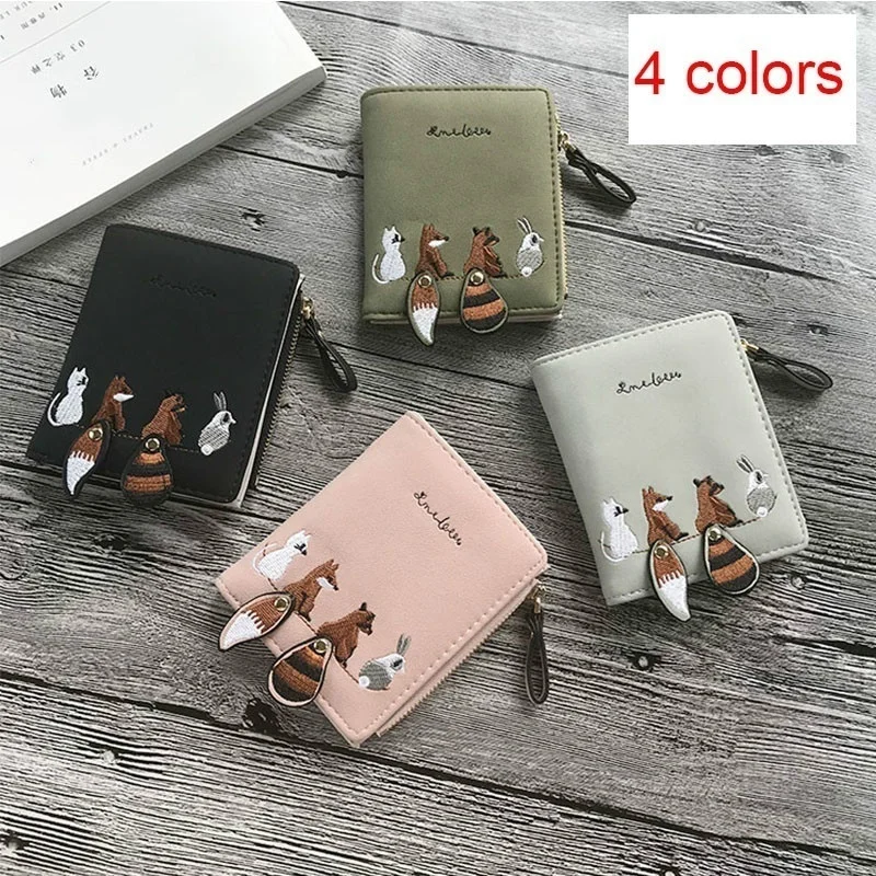 Кожаный женский кошелек, женский маленький кошелек для монет, короткие женские кошельки с мультяшным принтом, карманные кошелеки с животными для девочек