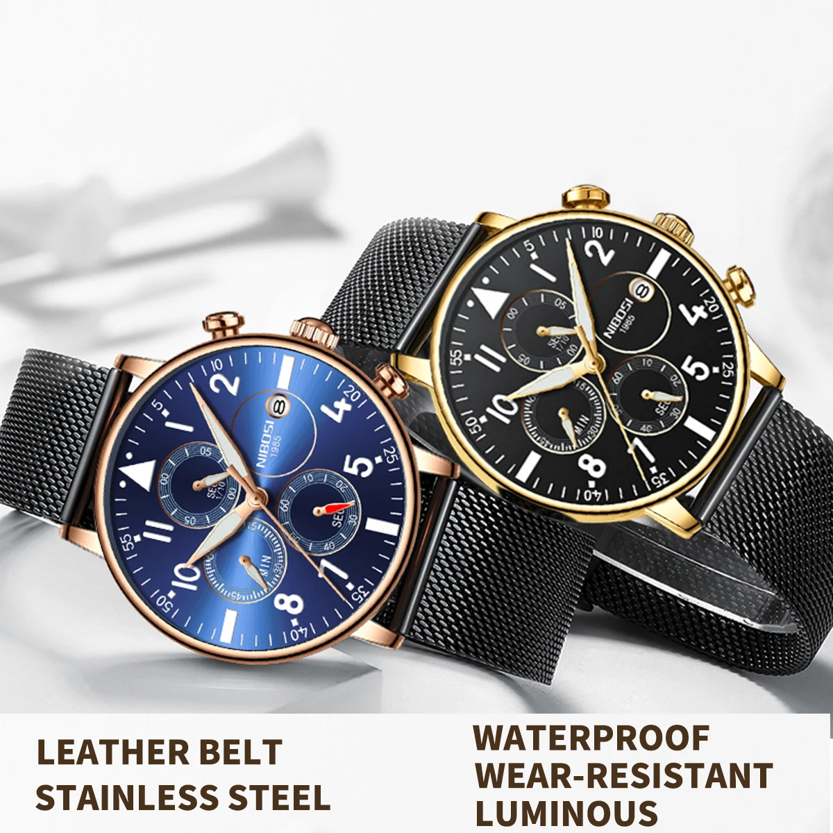 Часы наручные NIBOSI Мужские кварцевые, водонепроницаемые брендовые...