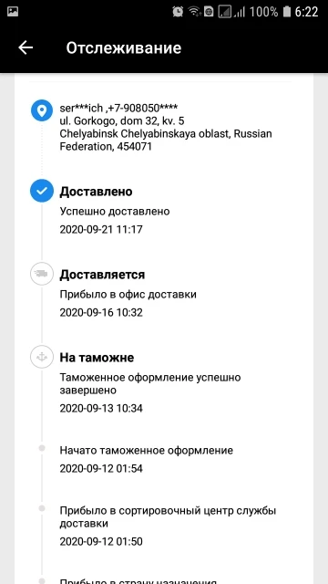 Страна: RU Доставка: Cainiao Super Economy 09.11.2020