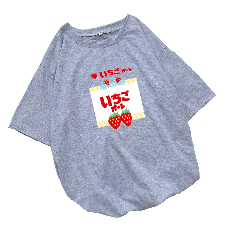 Футболка женская летняя с коротким рукавом, круглым вырезом и принтом клубники