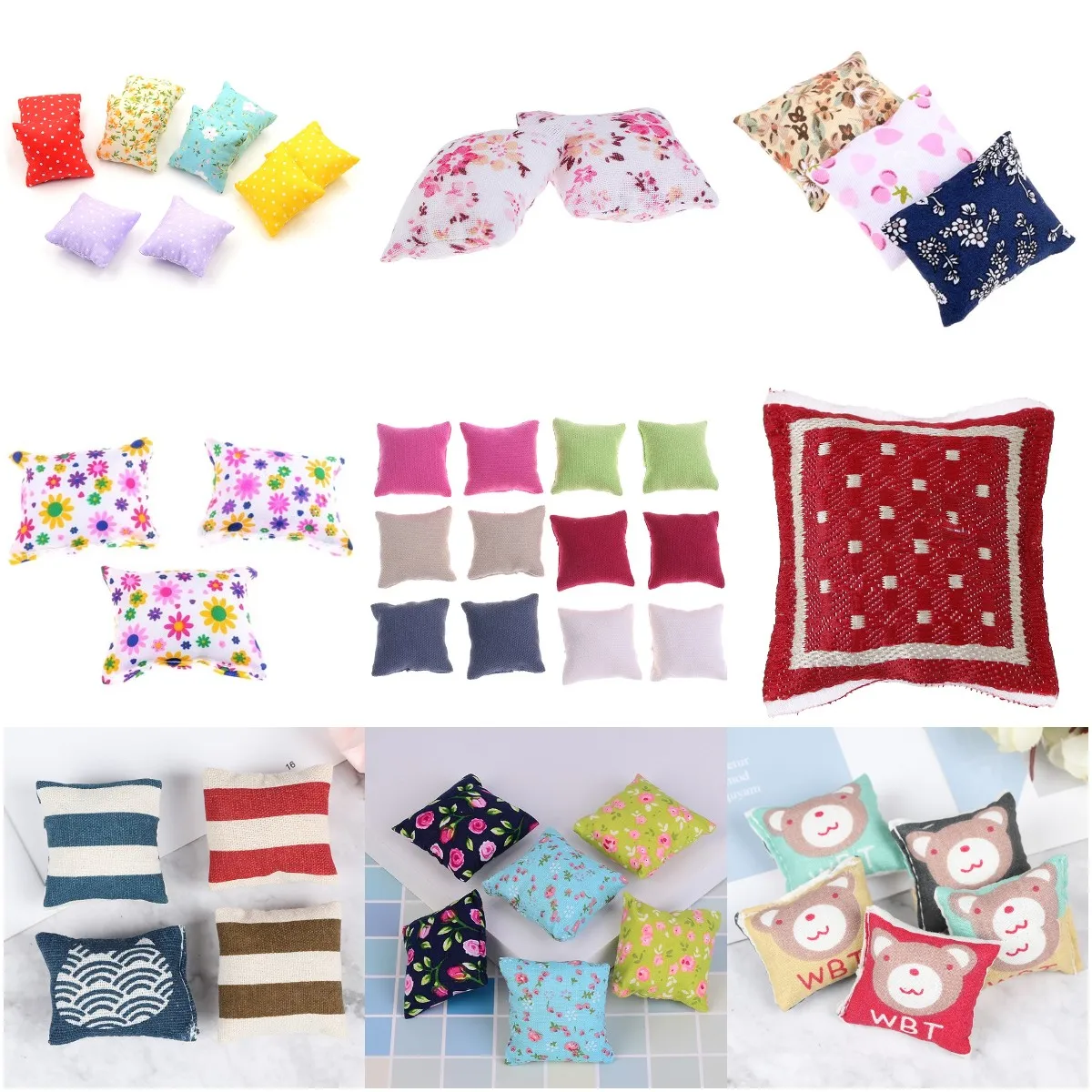 Миниатюрные подушки с цветами для дивана, кровати, кукольного домик...