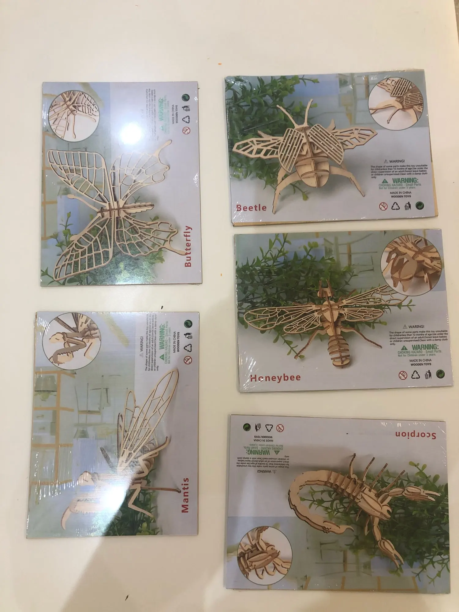 Детская игрушка Монтессори, 3D пазл, доска для самостоятельной сборки, деревянная головоломка, насекомое, животное, развивающая игрушка ручной работы, подарок для детей