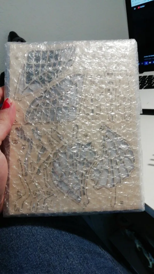 Это выглядит как на картинке, по крайней мере отдельные части в упаковке. Продавец сделал действительно достойную попытку сохранить пазл защищенным. Я хочу сказать, что было много пузырчатой пленки, я удивился, что это была маленькая головоломка в большой мягкой упаковке. К сожалению, во время транспортировки он все еще сломал хвост. Я никогда не открывал его и, честно говоря, не знаю, где его @. Я не очень расстроен, независимо от того, что я действительно получил его. В среднем 9/10 упаковок заканчиваются спорами, поэтому я рекомендую продавцу, на самом деле отправляю заказ.