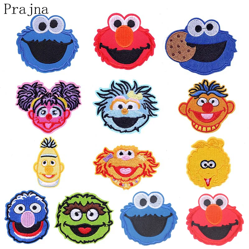 Prajna милые Мультяшные уличные пластыри с изображением Сезам Элмо печенья аниме глажка пластырей дешевые вышитые Пластыри для детской одежды сделай сам