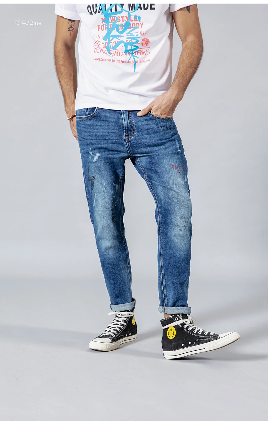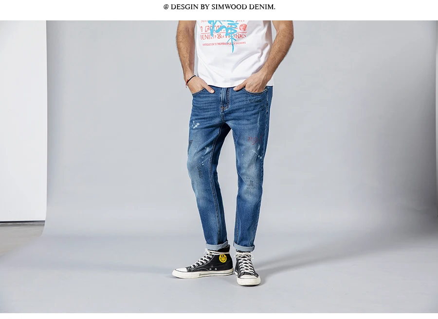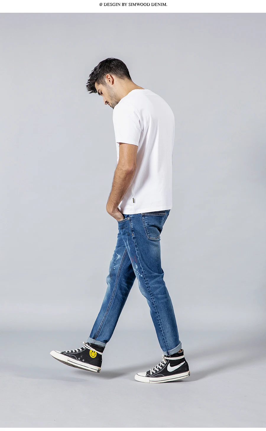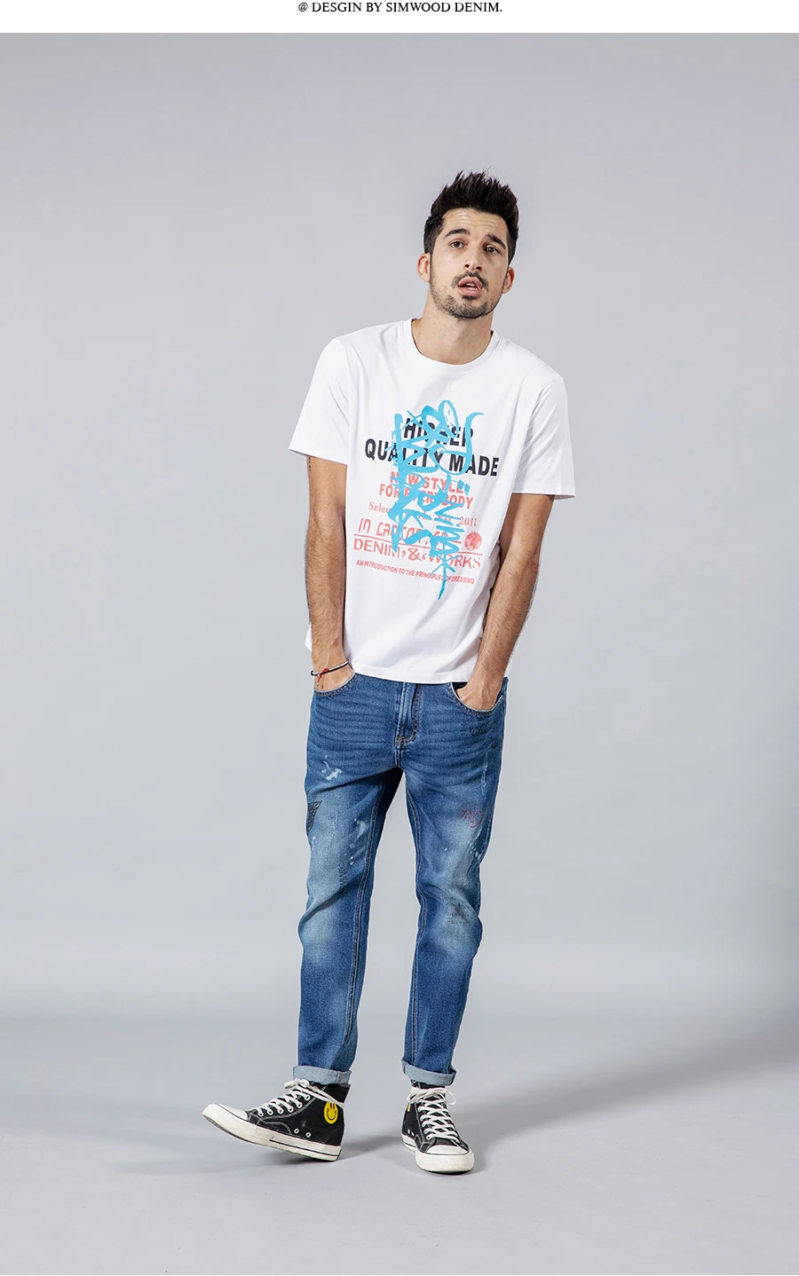 Демисезонные мужские джинсовые брюки SIMWOOD, джинсовые штаны с принтом Буквы, равные джинсы длиной до щиколотки, 2019, уличная одежда из денима в стиле Хип-хоп, 190202