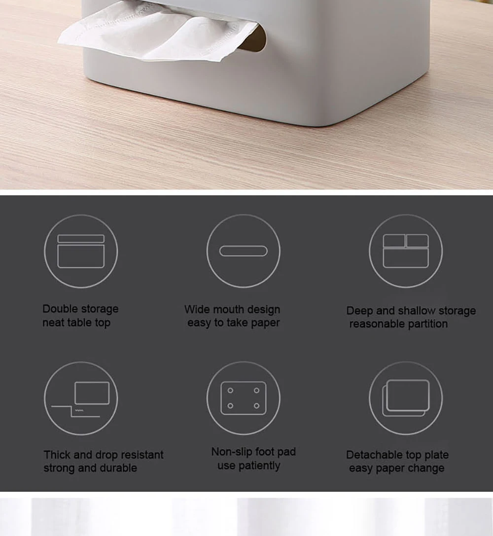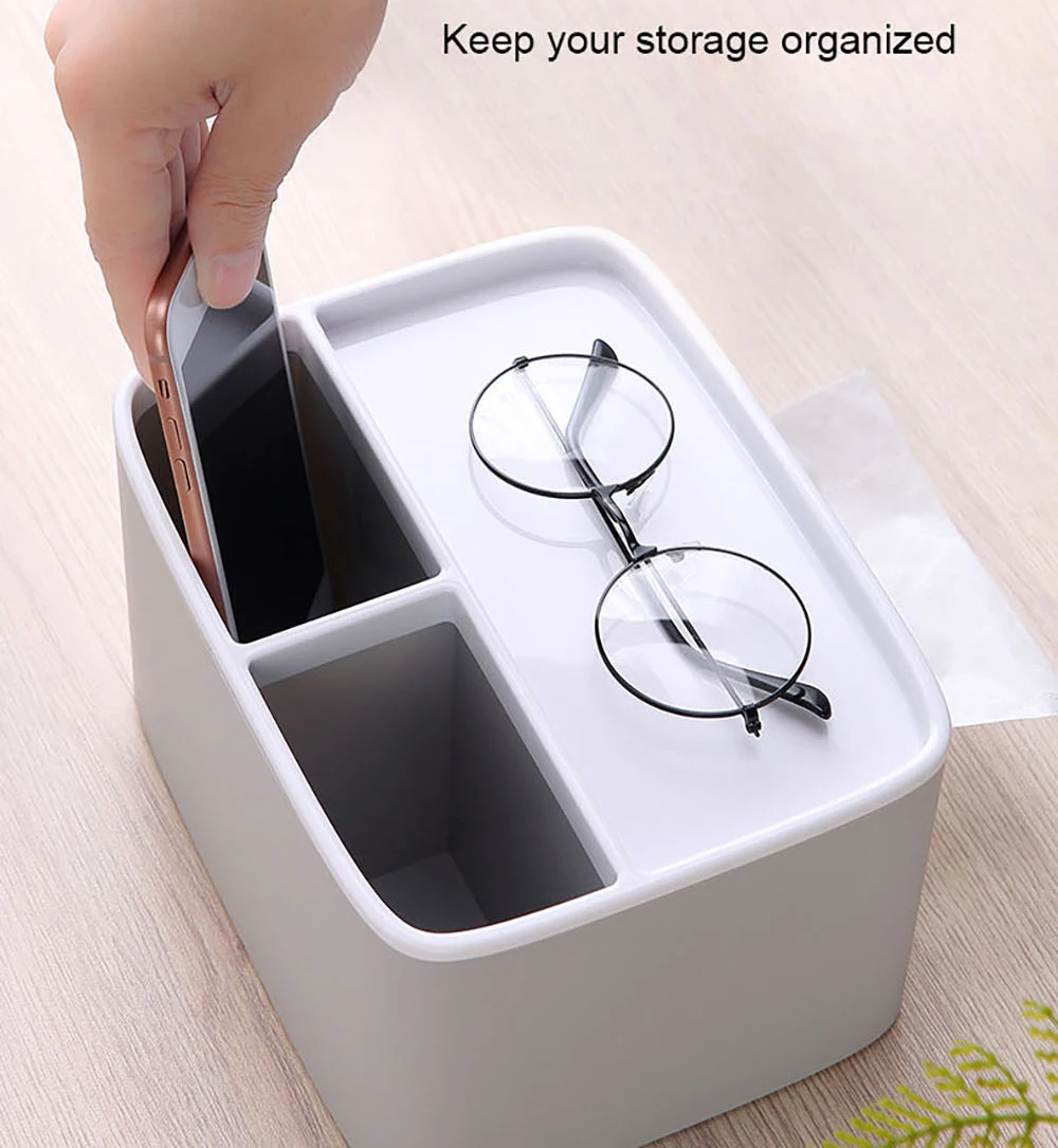 1. М Ulti-functional storsge box с бумажной тканью может организовать дистанционное управление, косметику, мобильный телефон, часы и т. Д.