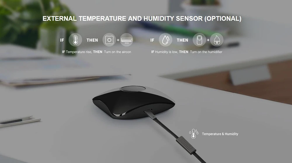 Дистанционное управлениеРежим открытия воздуха на большие расстояния, Установка режима кондиционирования воздуха и один клик для открытия ТВ, ТВ-приставок и т. д.Поймать все Инфракрасные приборыСовместимость с инфракрасными приборами: кондиционером, телевизором, ТВ-боксами, IP-телевидением, аудио, DVD-проекторами, зеркальными камерами и т. д. поддержка автономного обучения, управления большим количеством устройств.