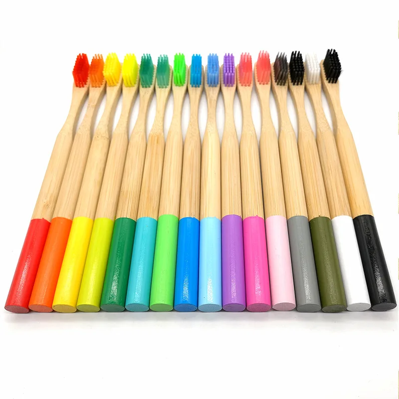 Радужная зубная щетка многоцветная зубная щетка из натурального бамбука с круглой бамбуковой ручкой, мягкая щетина, экологически чистая зубная щетка для взрослых