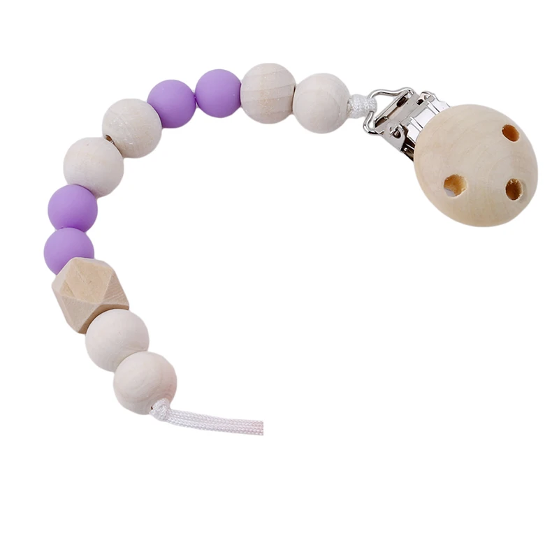 Зажим для детской соски, с силиконовыми бусинами, деревянный, цепоч...