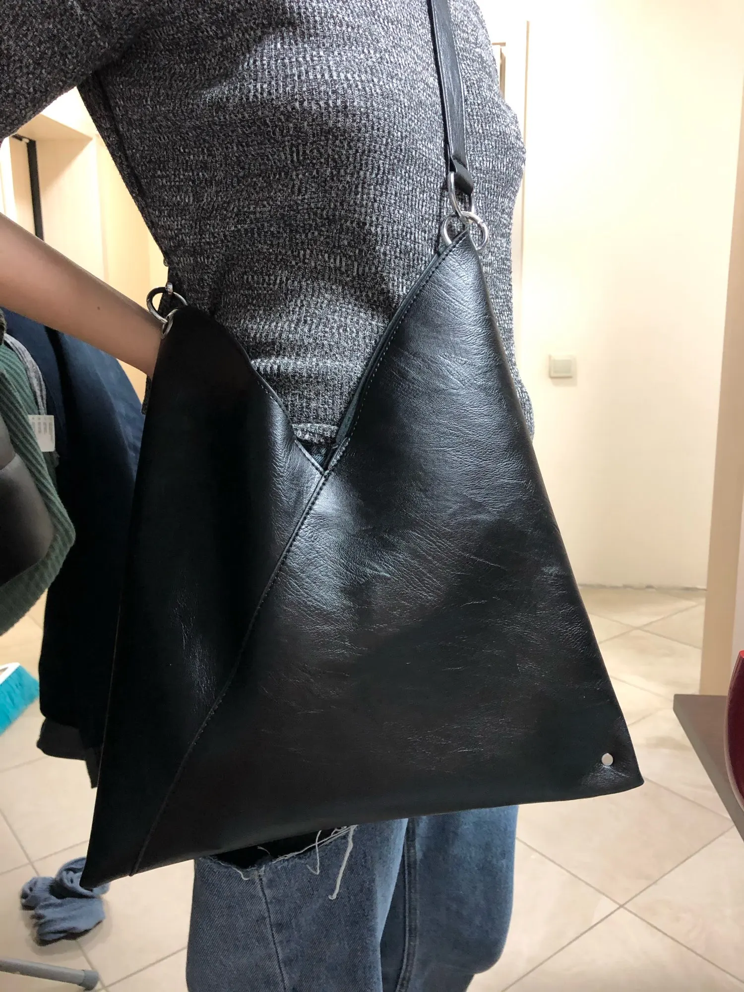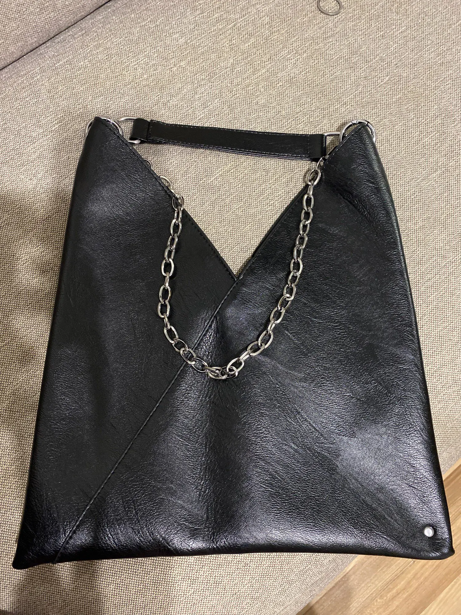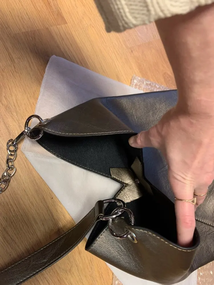 Сумка пришла за 10 дней в пастомат. Лаконичный дизайн. Для документов отлично. Я перекрепила цепочки и кожаную вставку поставила в серединку. Так удобнее носить на плече. Не для повседневной носки. Рекомендую.