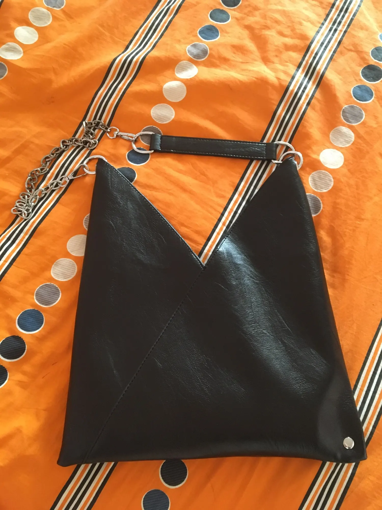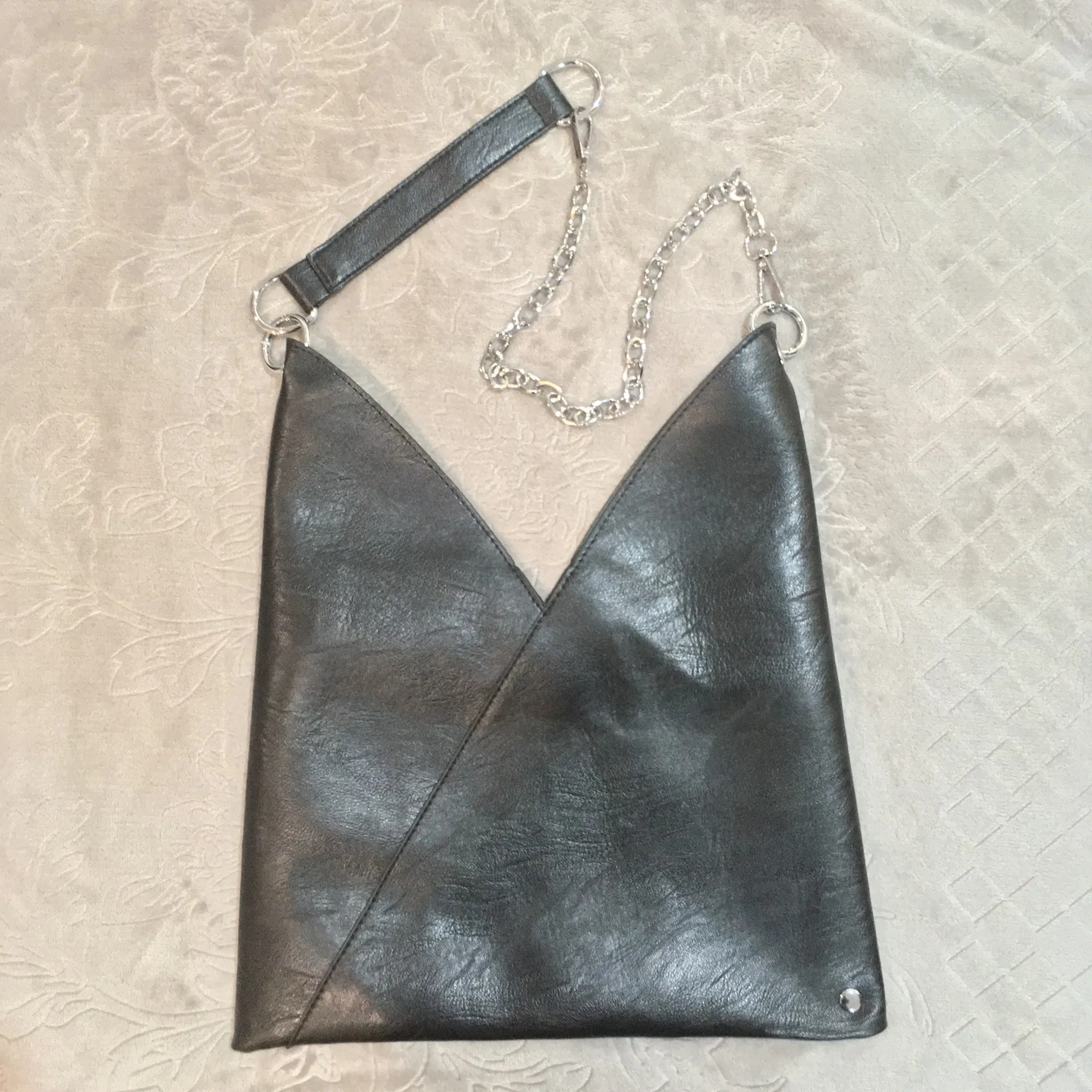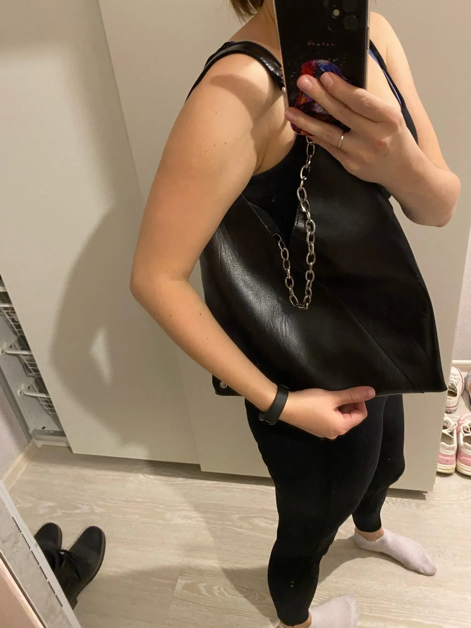 Сумка пришла за 10 дней в пастомат. Лаконичный дизайн. Для документов отлично. Я перекрепила цепочки и кожаную вставку поставила в серединку. Так удобнее носить на плече. Не для повседневной носки. Рекомендую.
